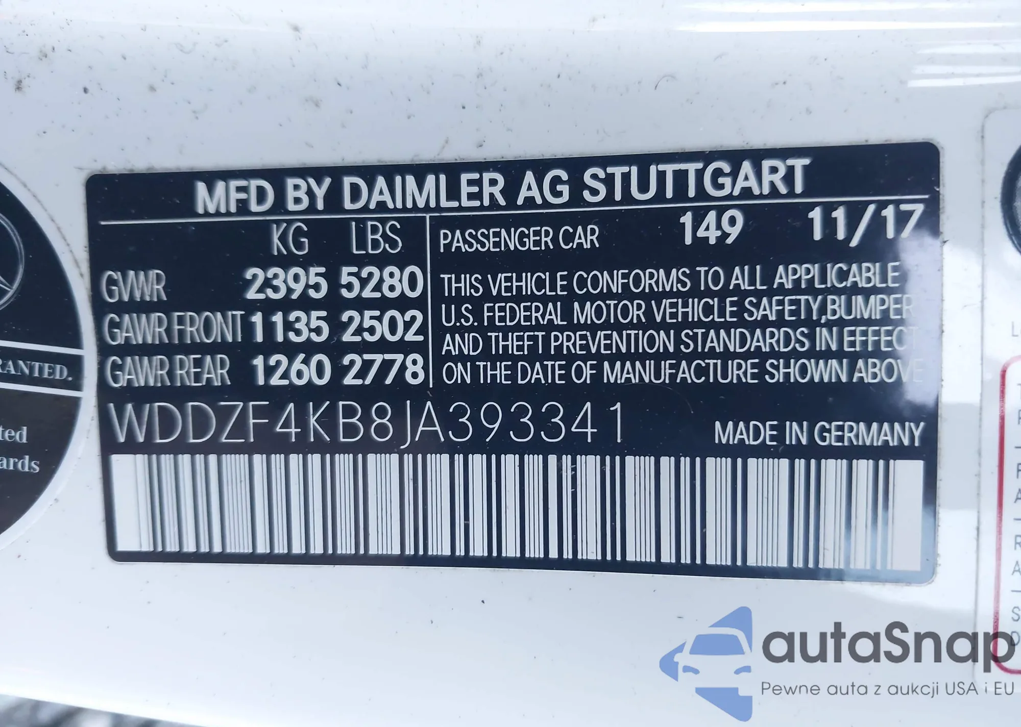 • VIN WDDZF4KB8JA393341