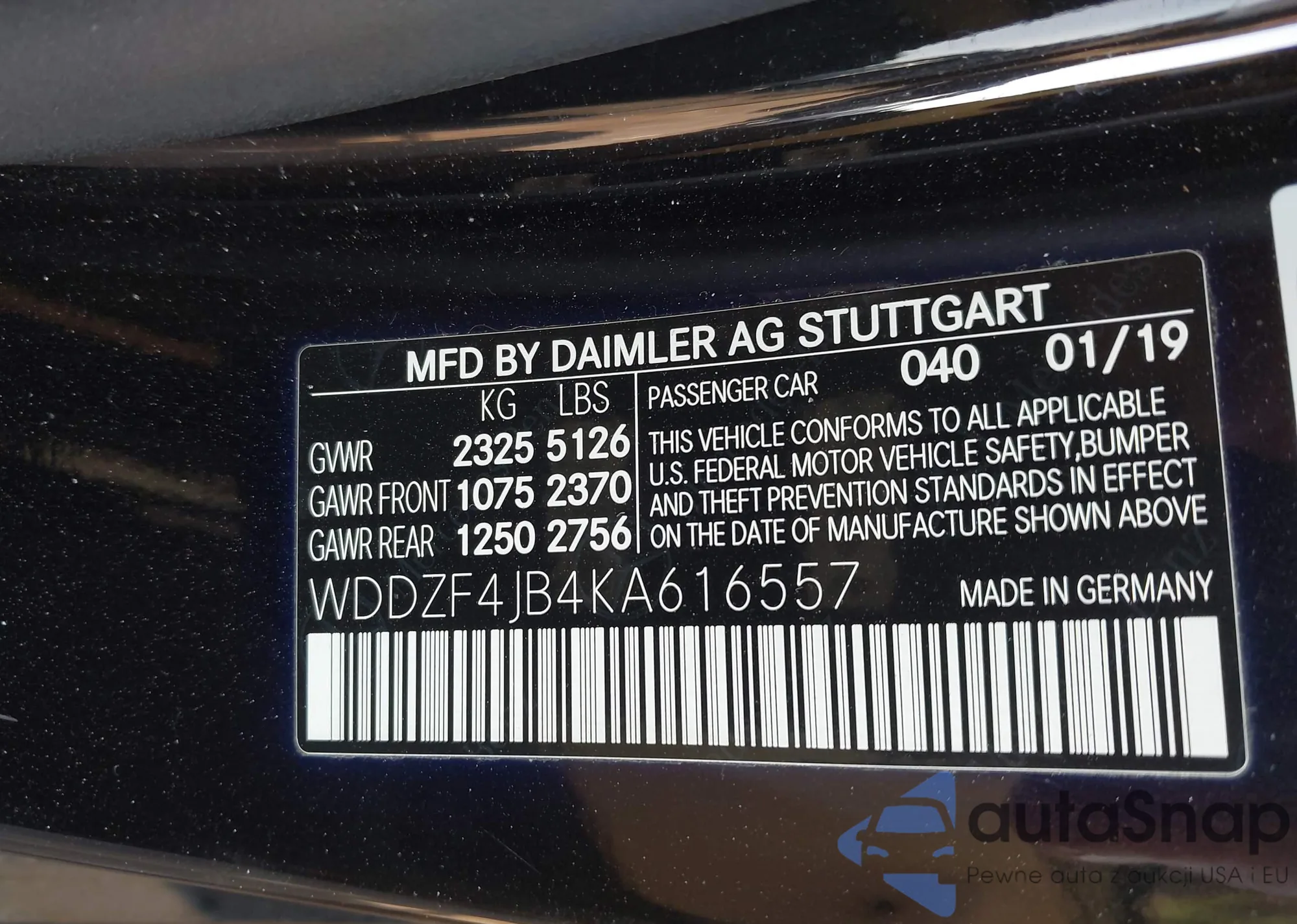• VIN WDDZF4JB4KA616557