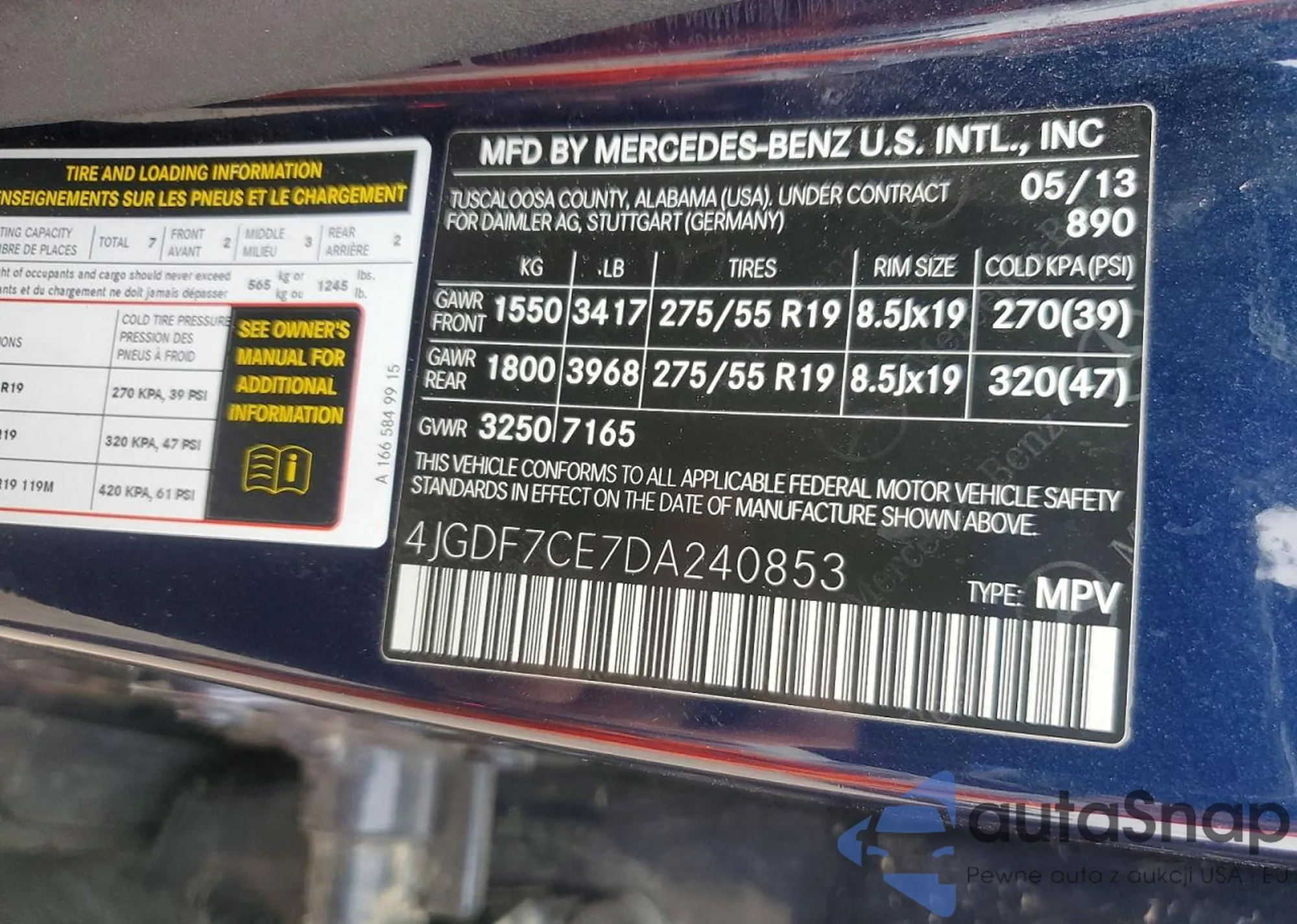 • VIN 4JGDF7CE7DA240853