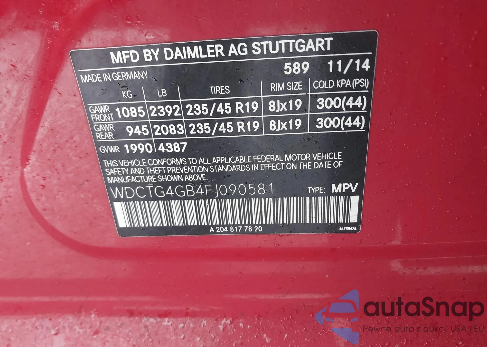 • VIN WDCTG4GB4FJ090581