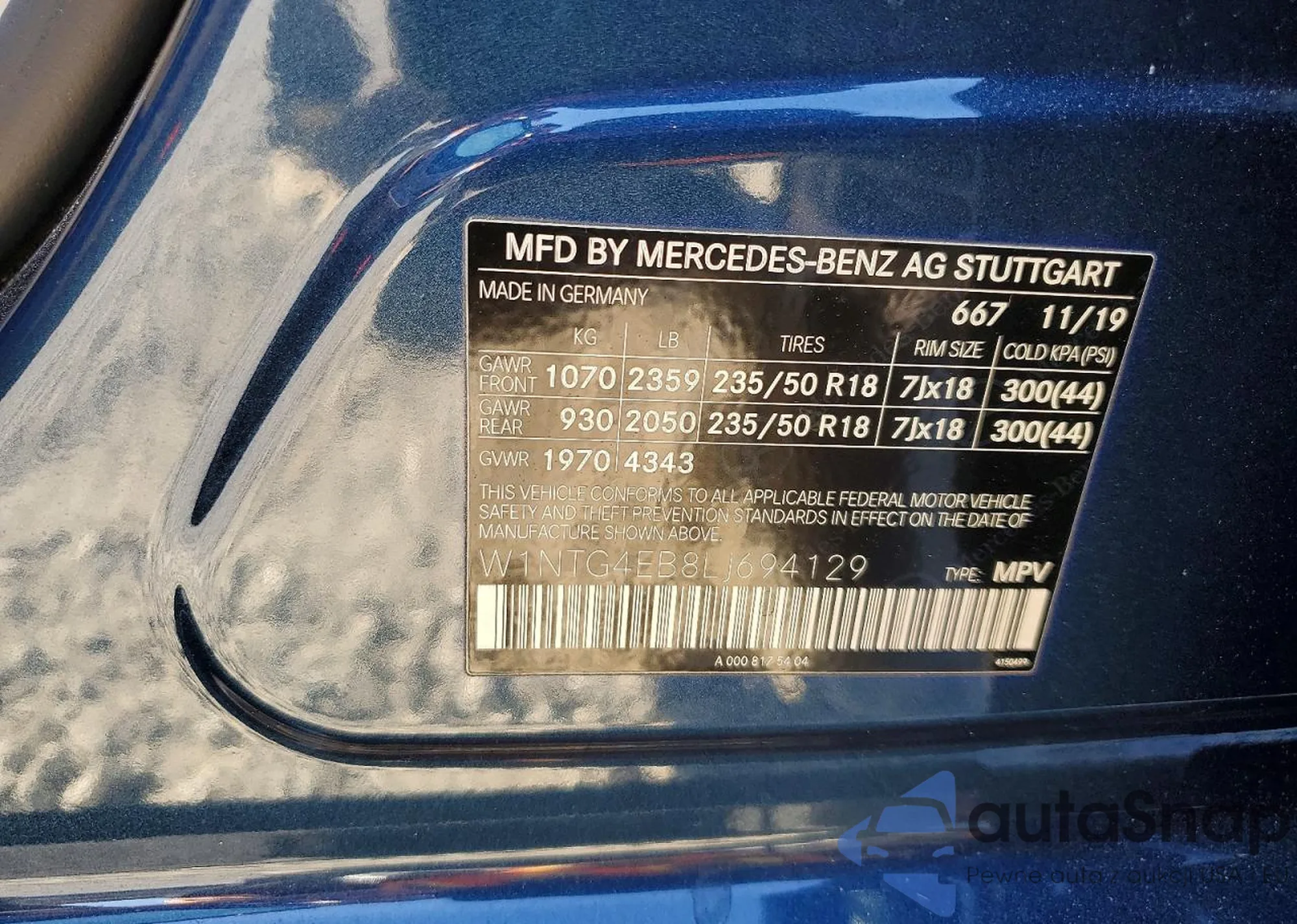 • VIN W1NTG4EB8LJ694129