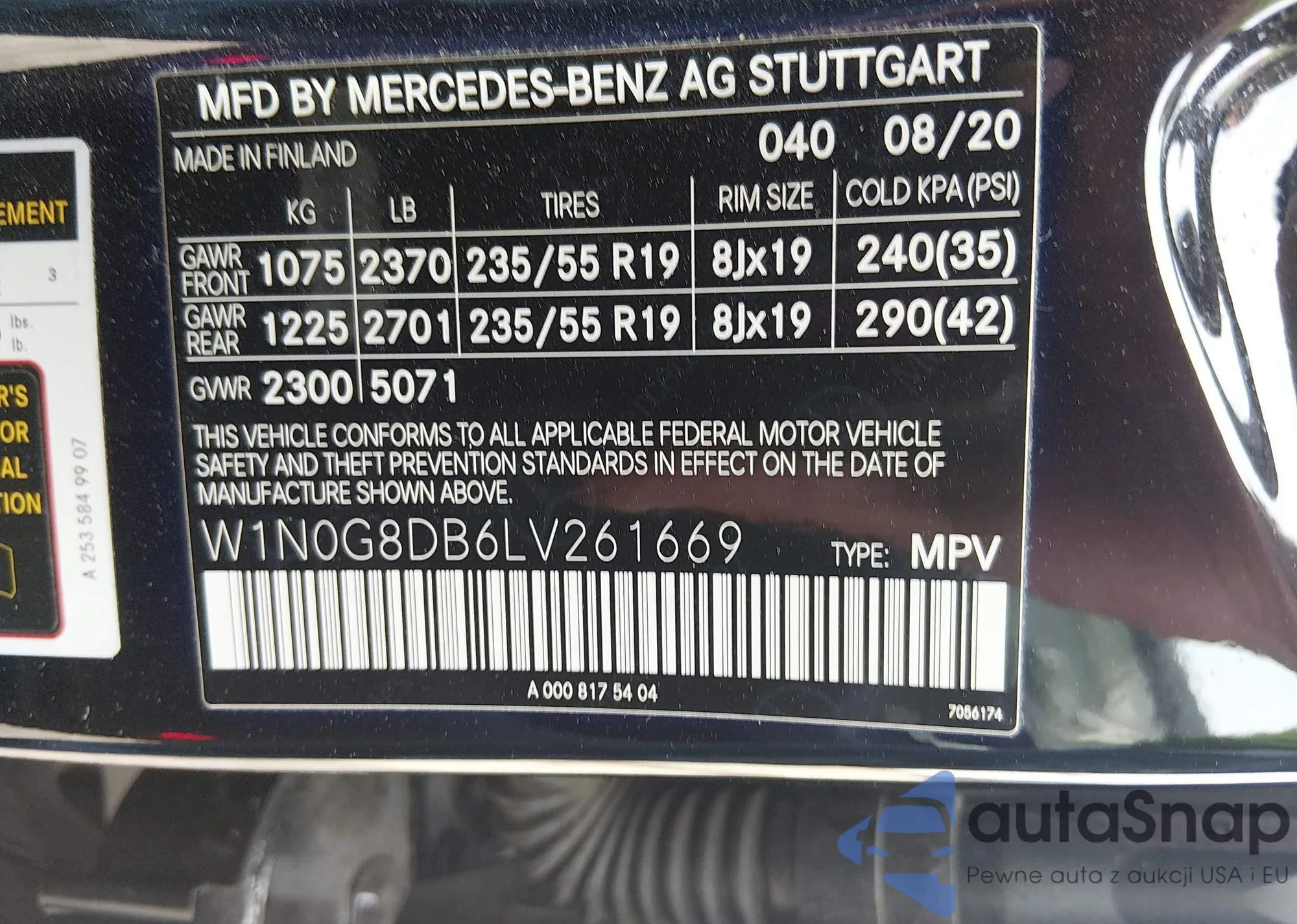 • VIN W1N0G8DB6LV261669