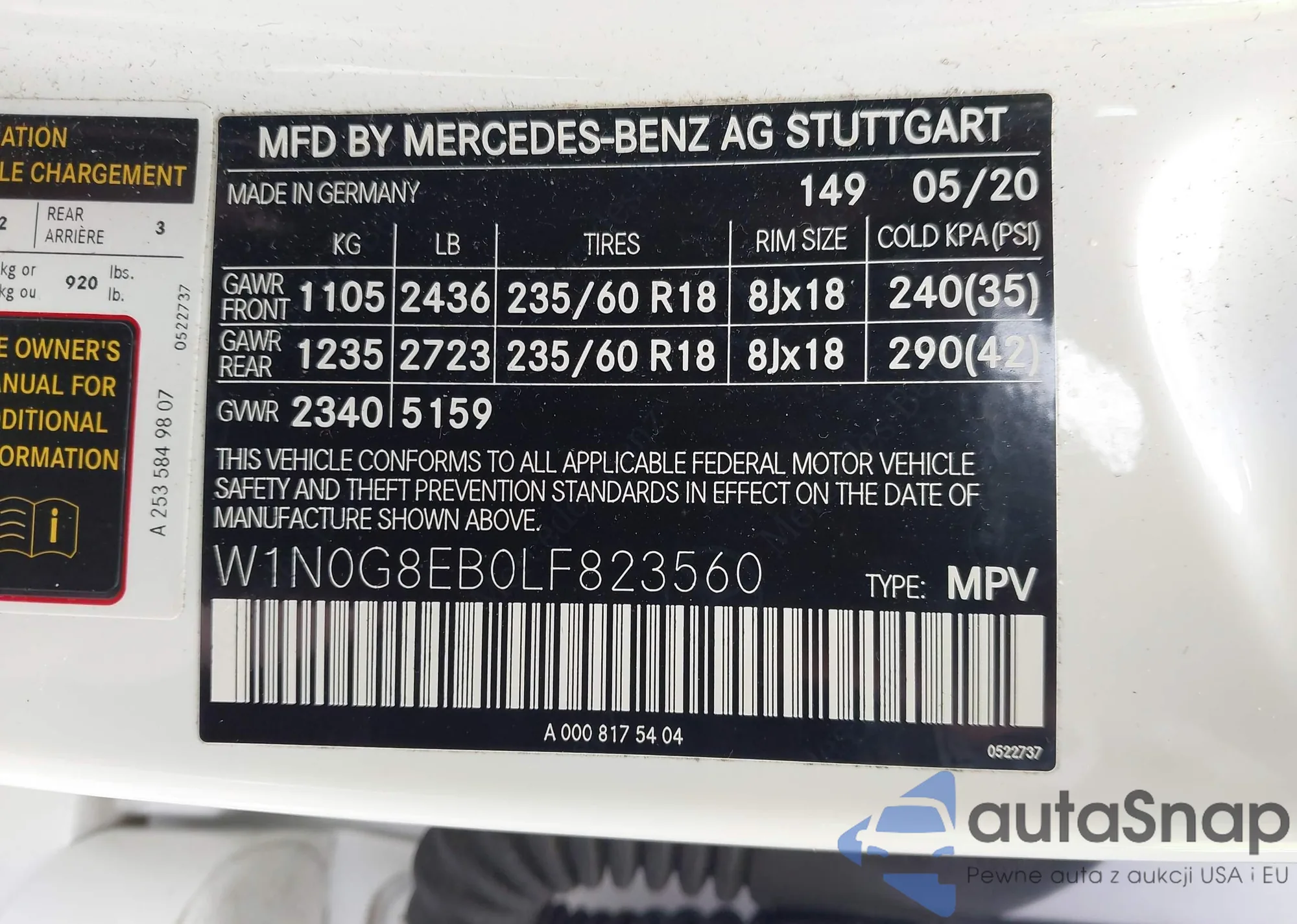• VIN W1N0G8EB0LF823560