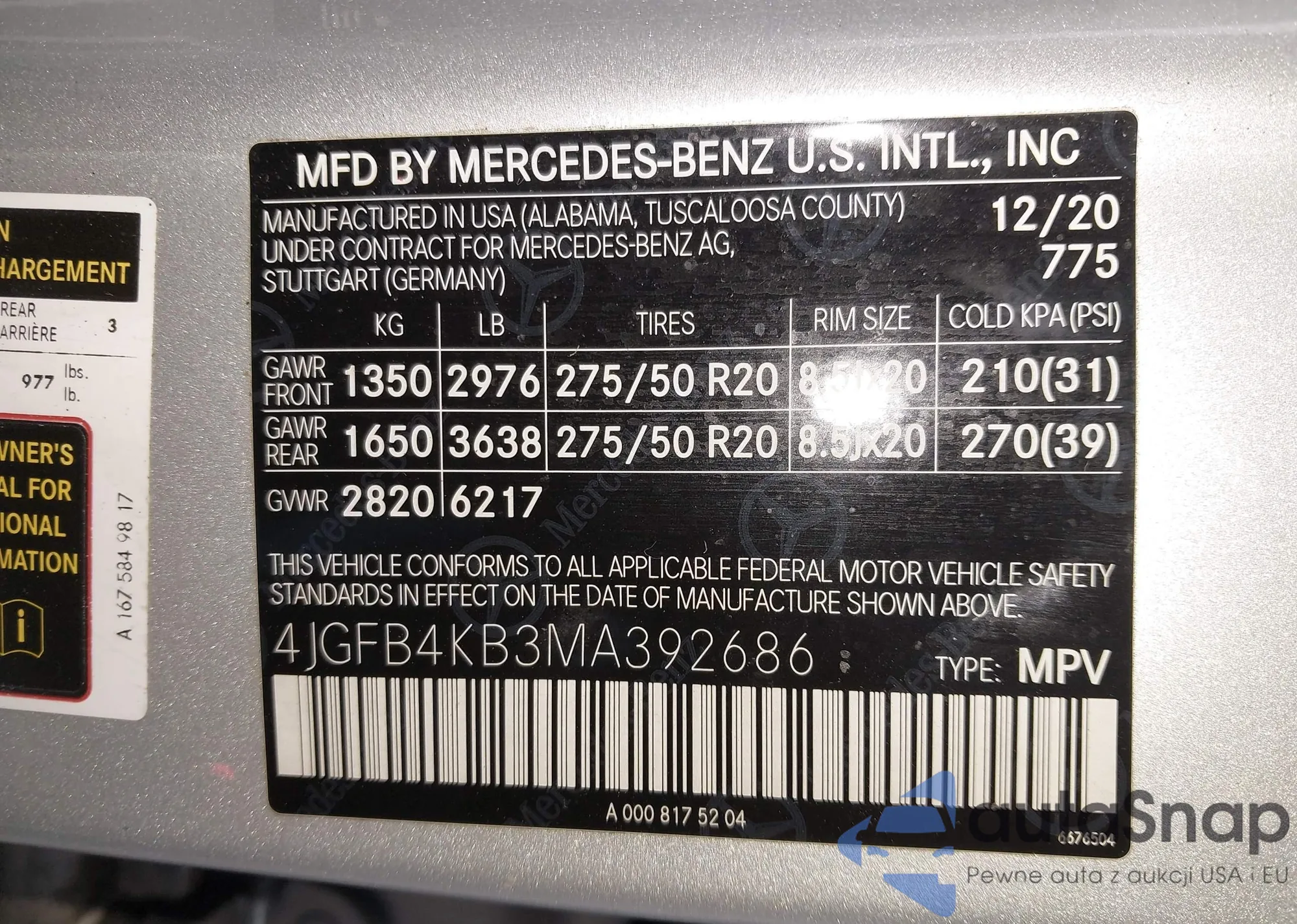 • VIN 4JGFB4KB3MA392686