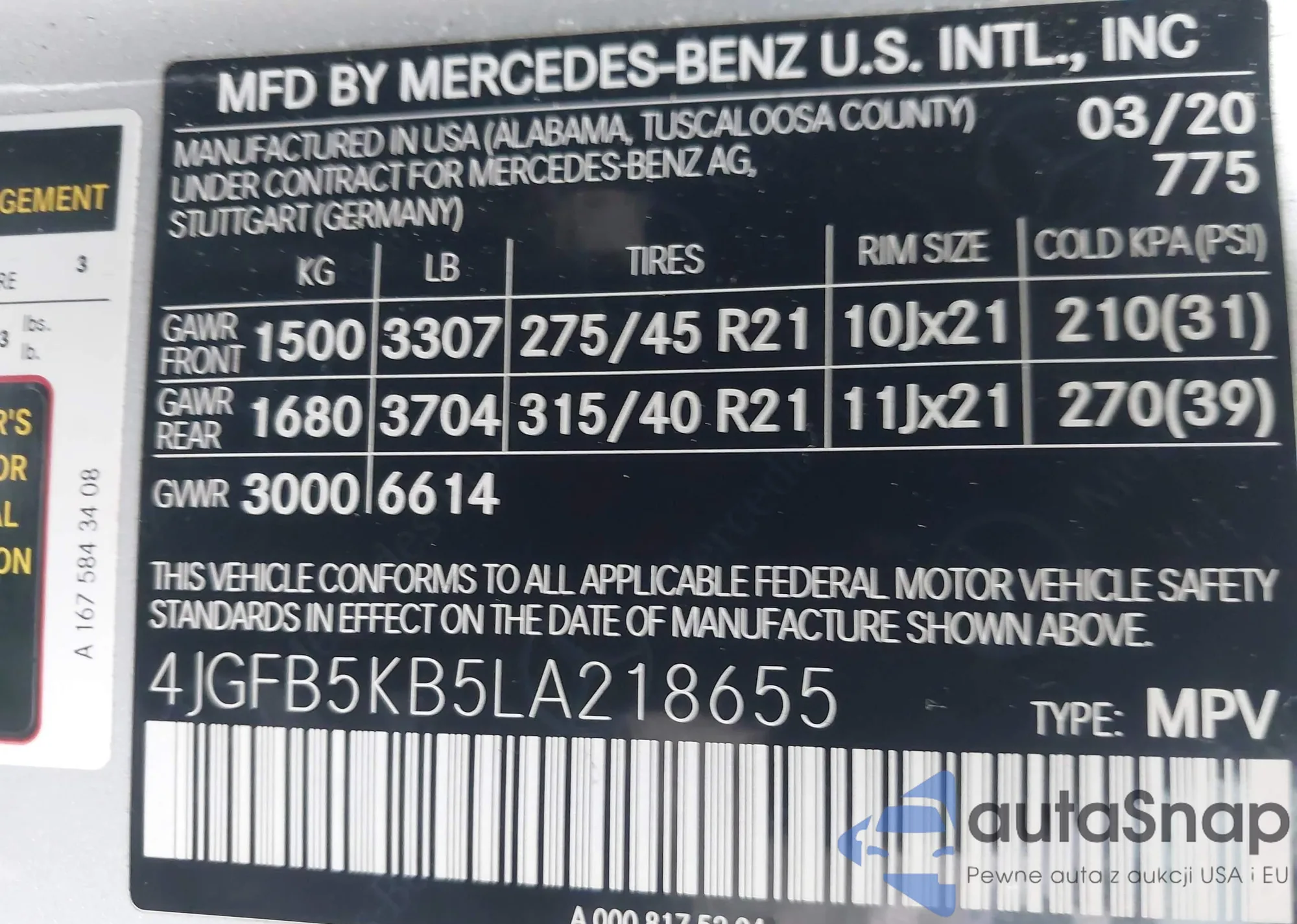 • VIN 4JGFB5KB5LA218655