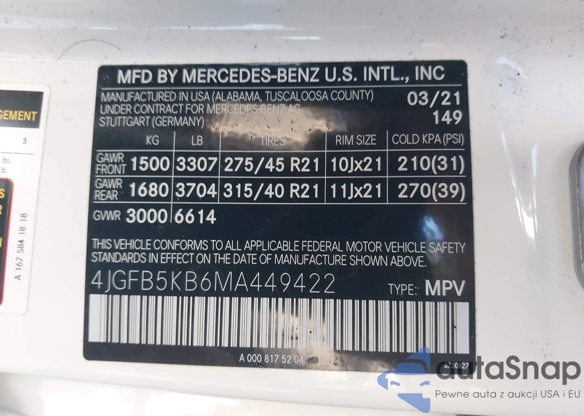 • VIN 4JGFB4KE7MA391471
