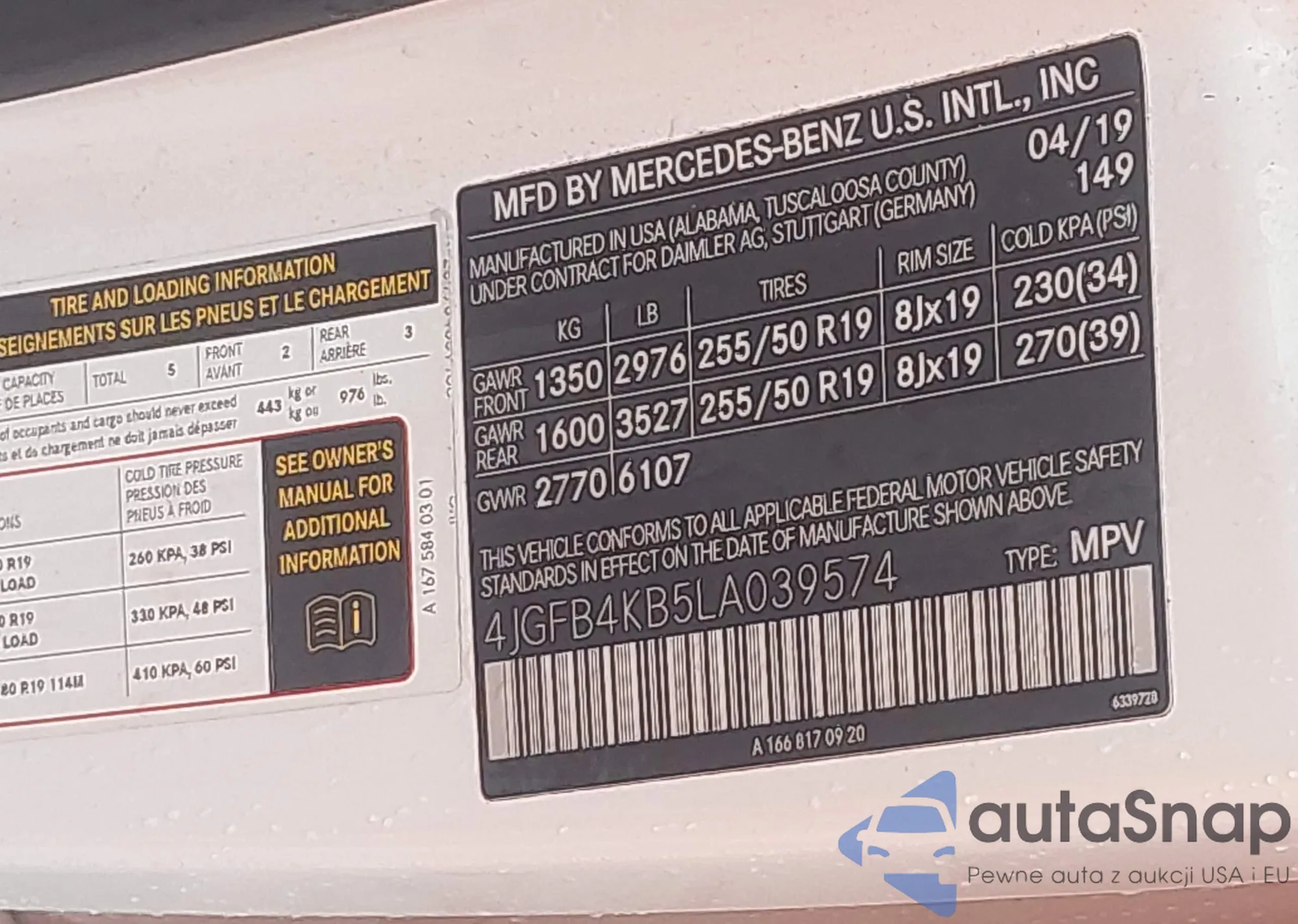 • VIN 4JGFB4KB5LA039574
