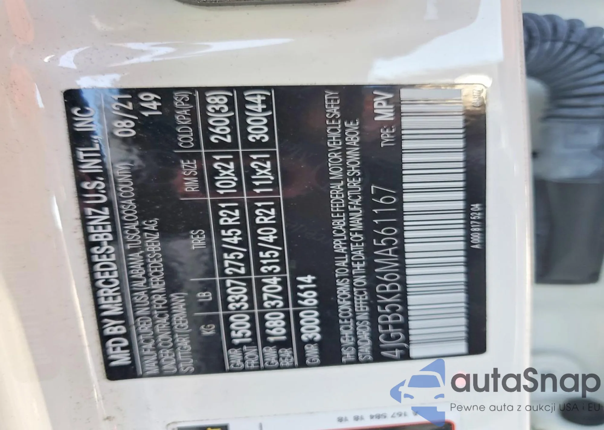 • VIN 4JGFB4KE6MA495983