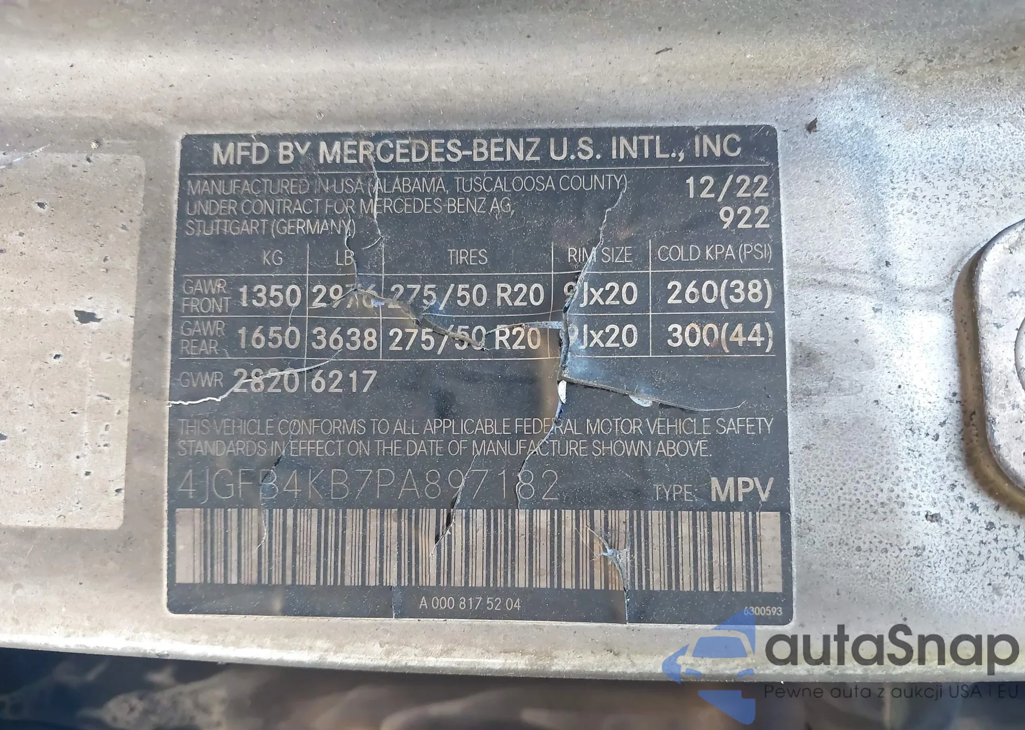 • VIN 4JGFB4KB7PA897182