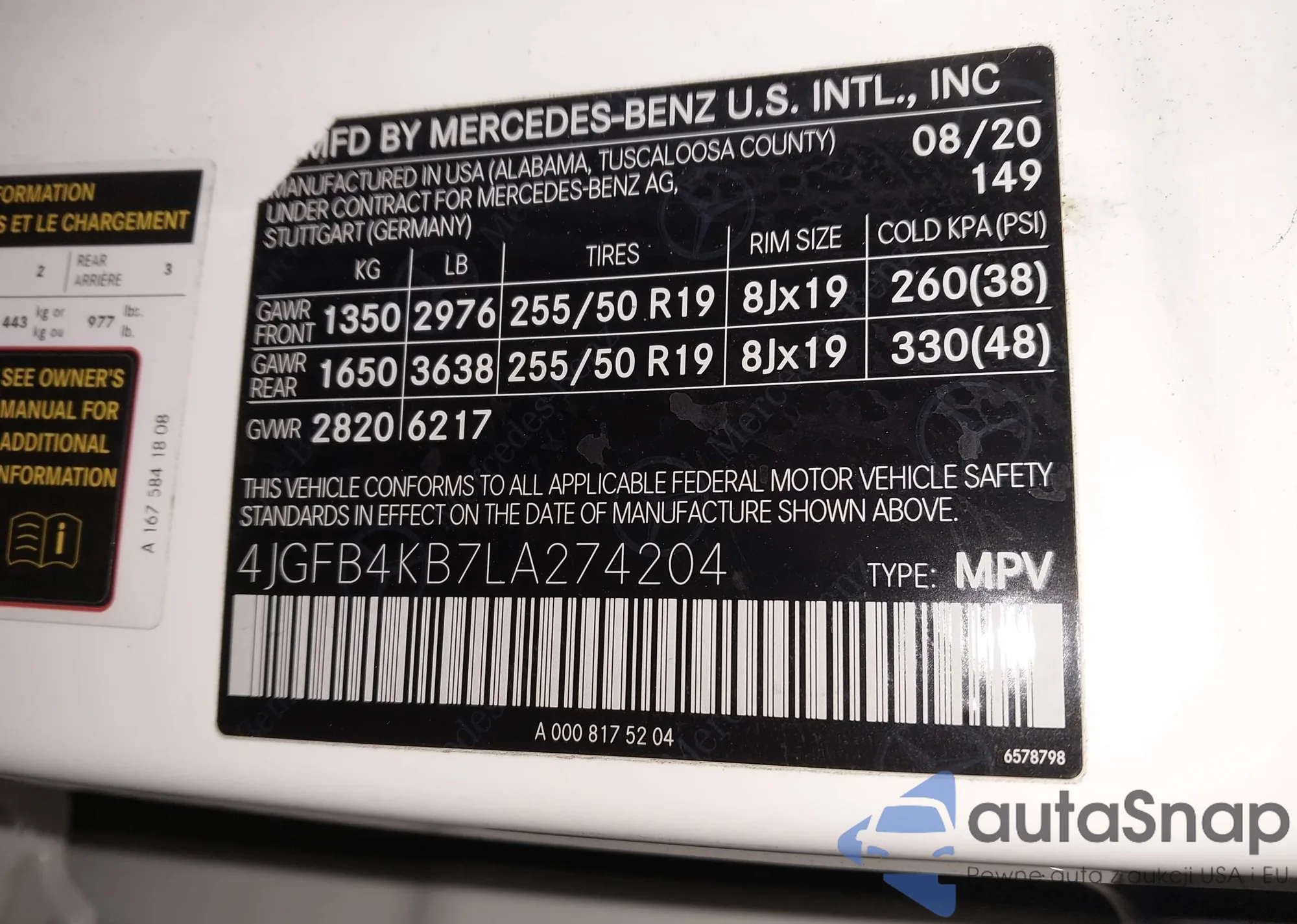 • VIN 4JGFB4KB7LA274204