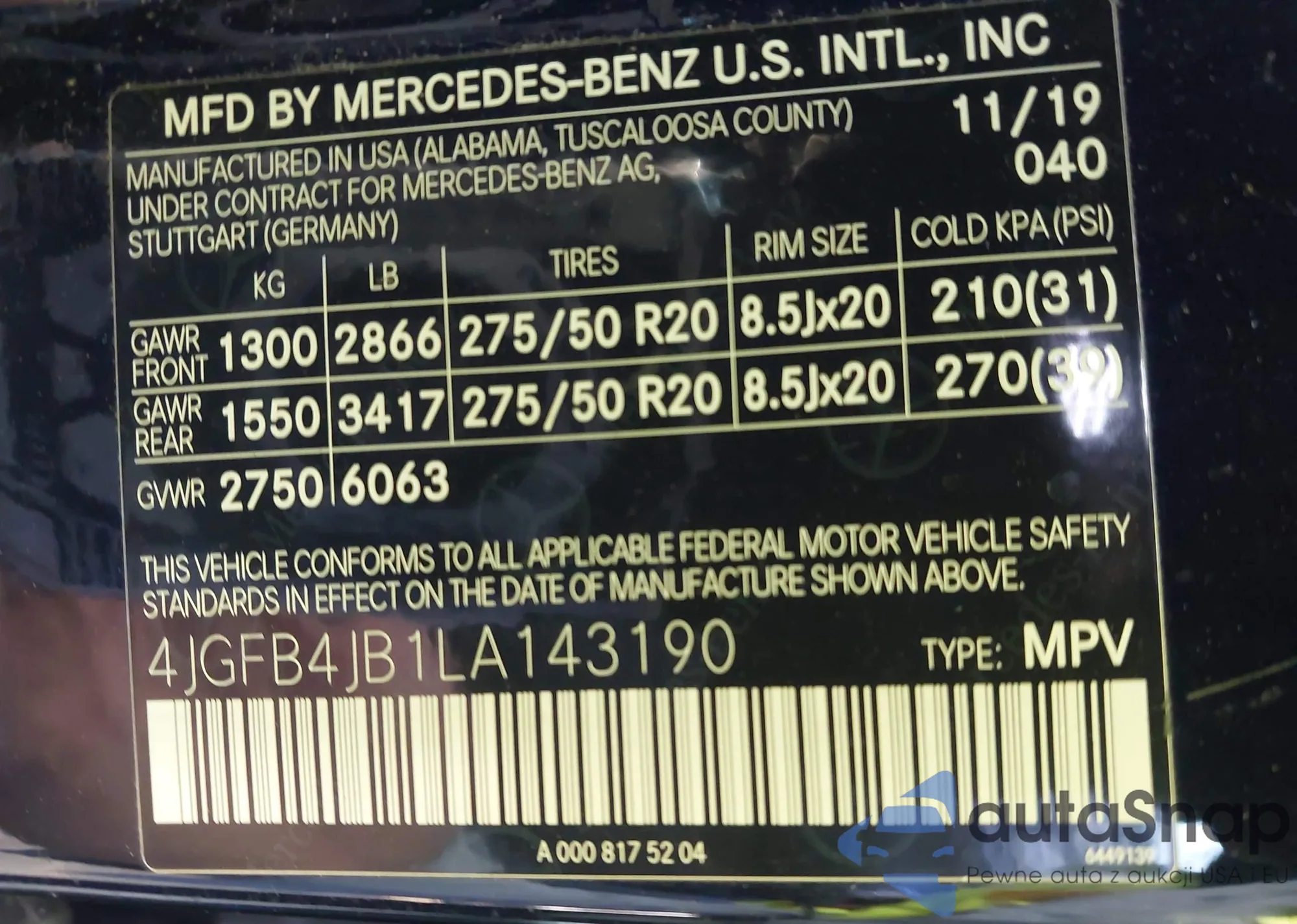• VIN 4JGFB4JB1LA143190