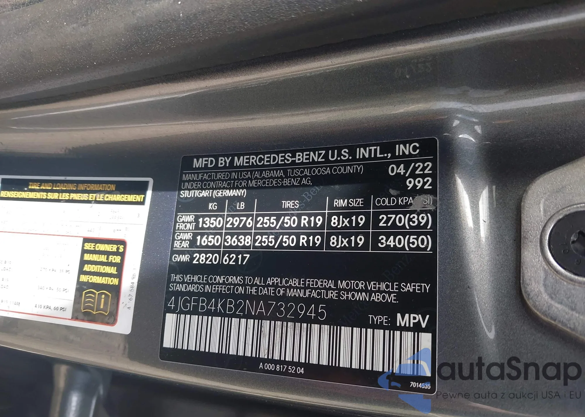 • VIN 4JGFB4KB2NA732945