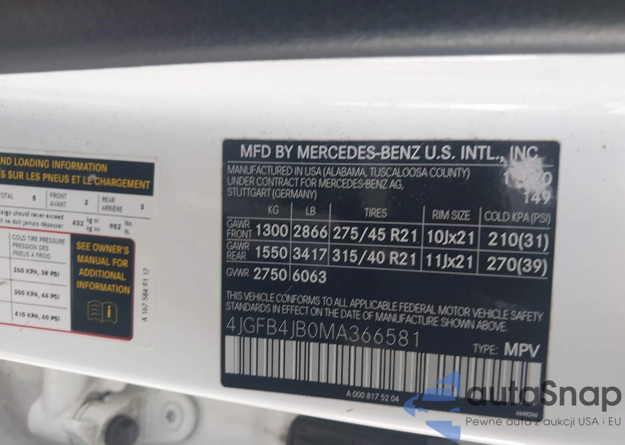 • VIN 4JGFB4JB0MA366581