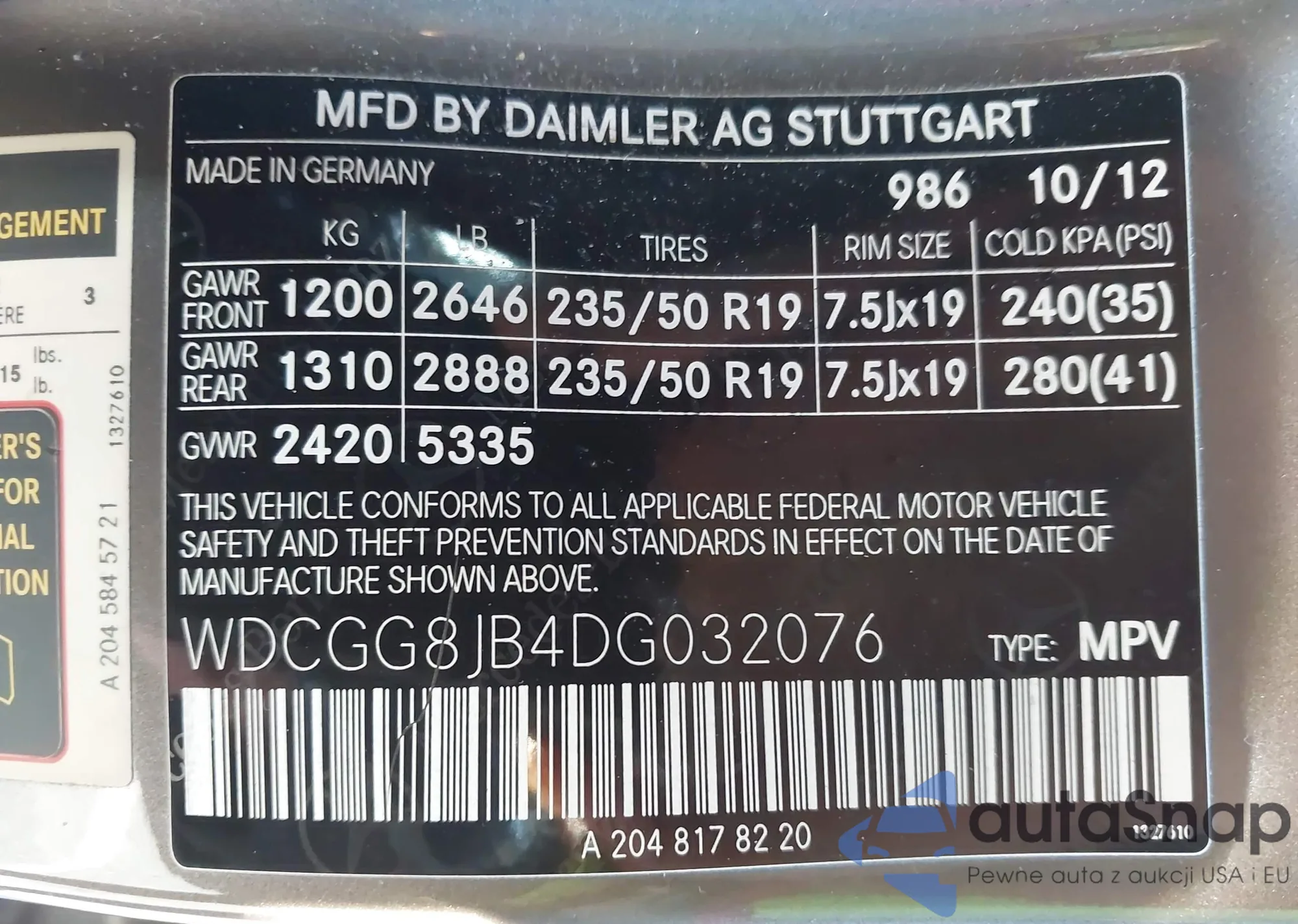 • VIN WDCGG8JB4DG032076
