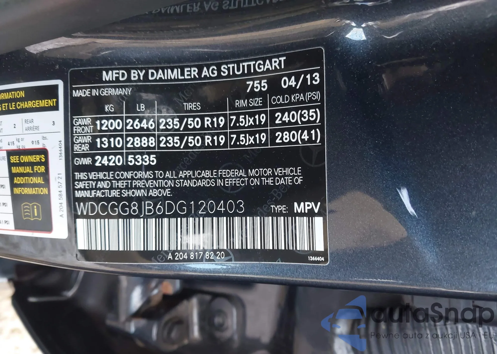 • VIN WDCGG8JB6DG120403