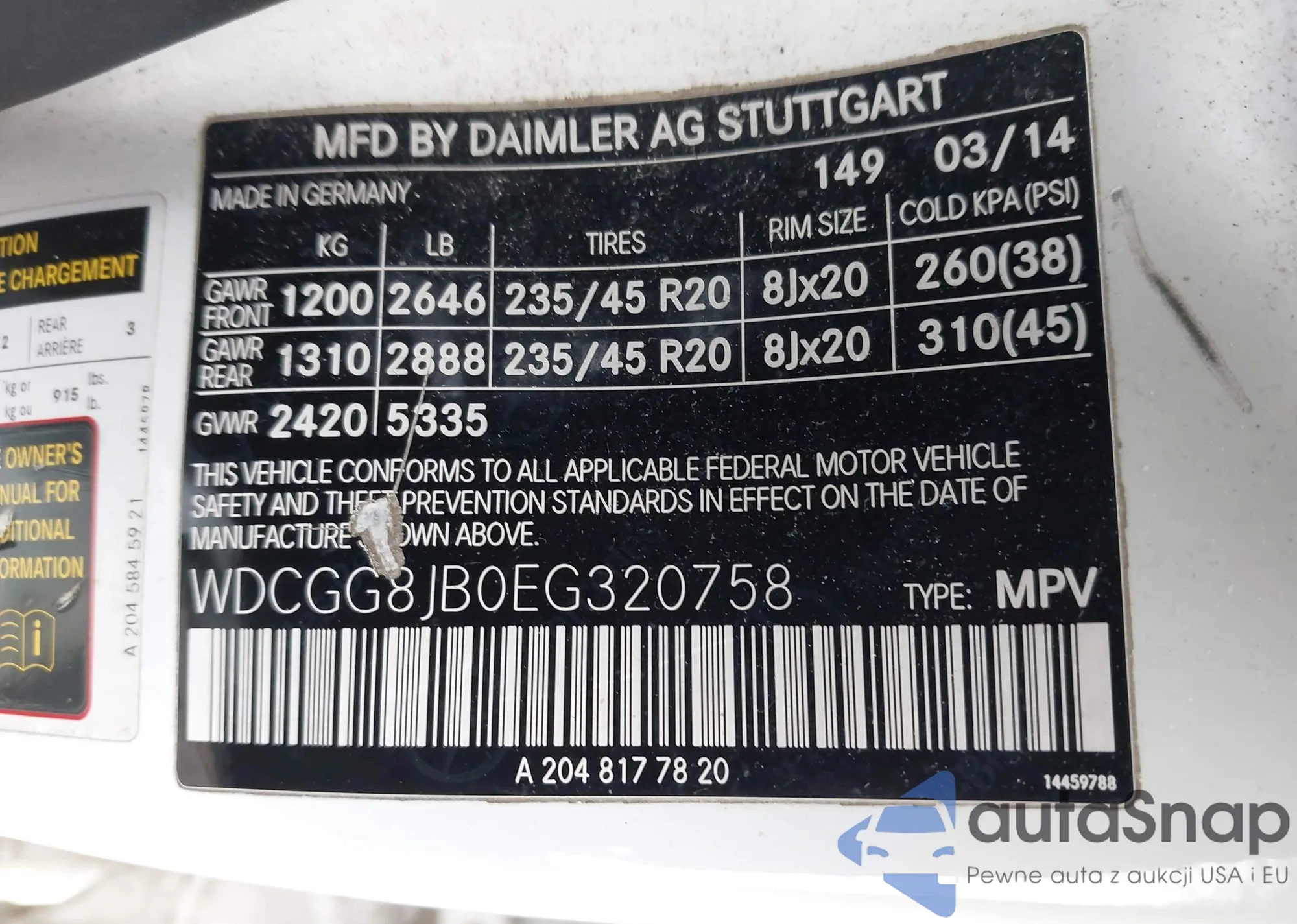 • VIN WDCGG8JB0EG320758
