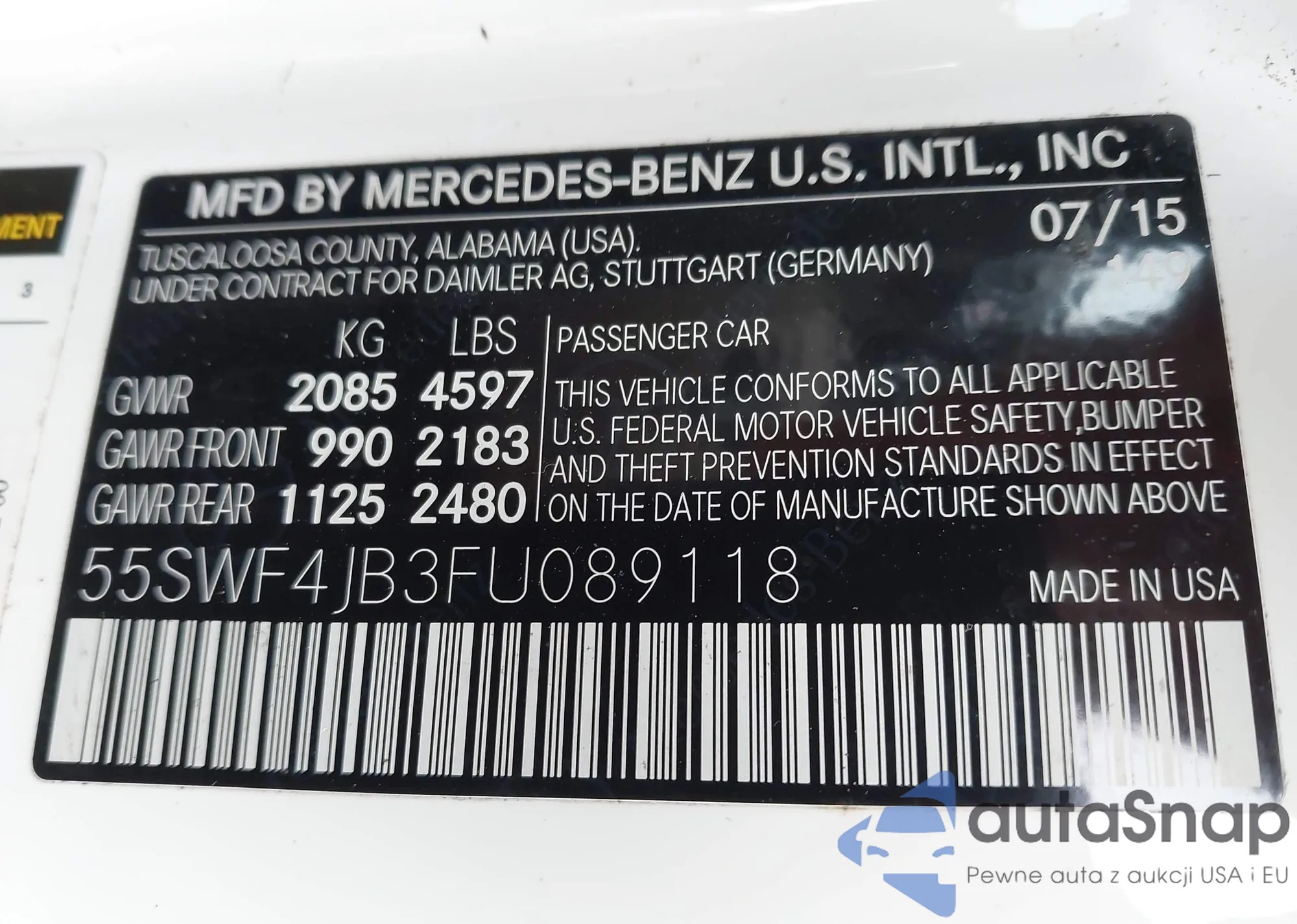 • VIN 55SWF4JB3FU089118