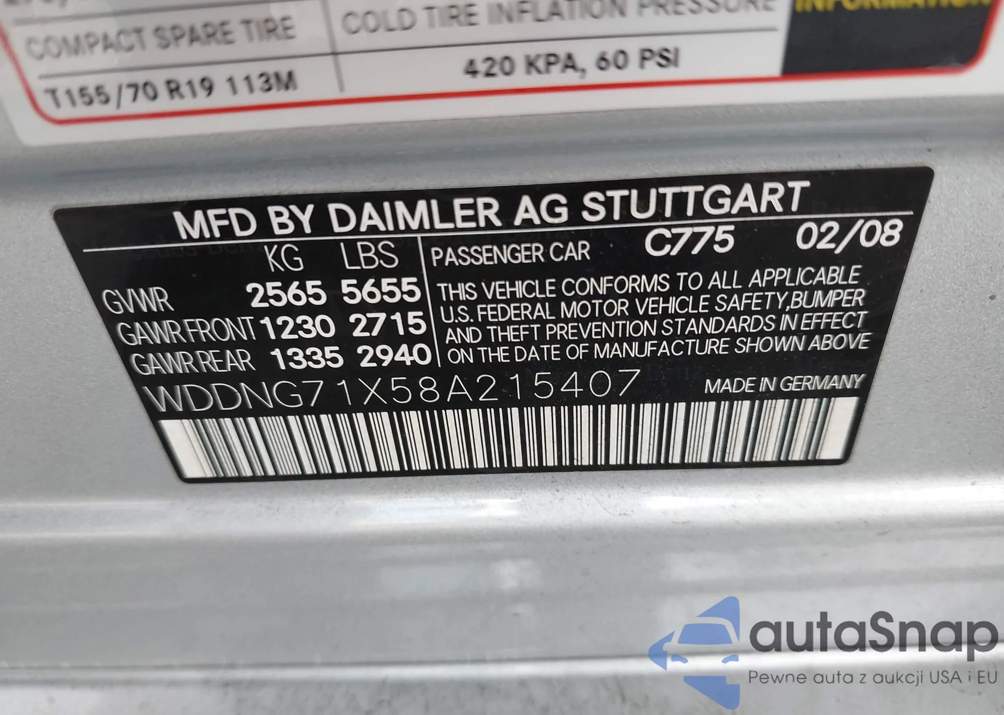 LOT: 44453195 VIN: WDDNG71X58A215407