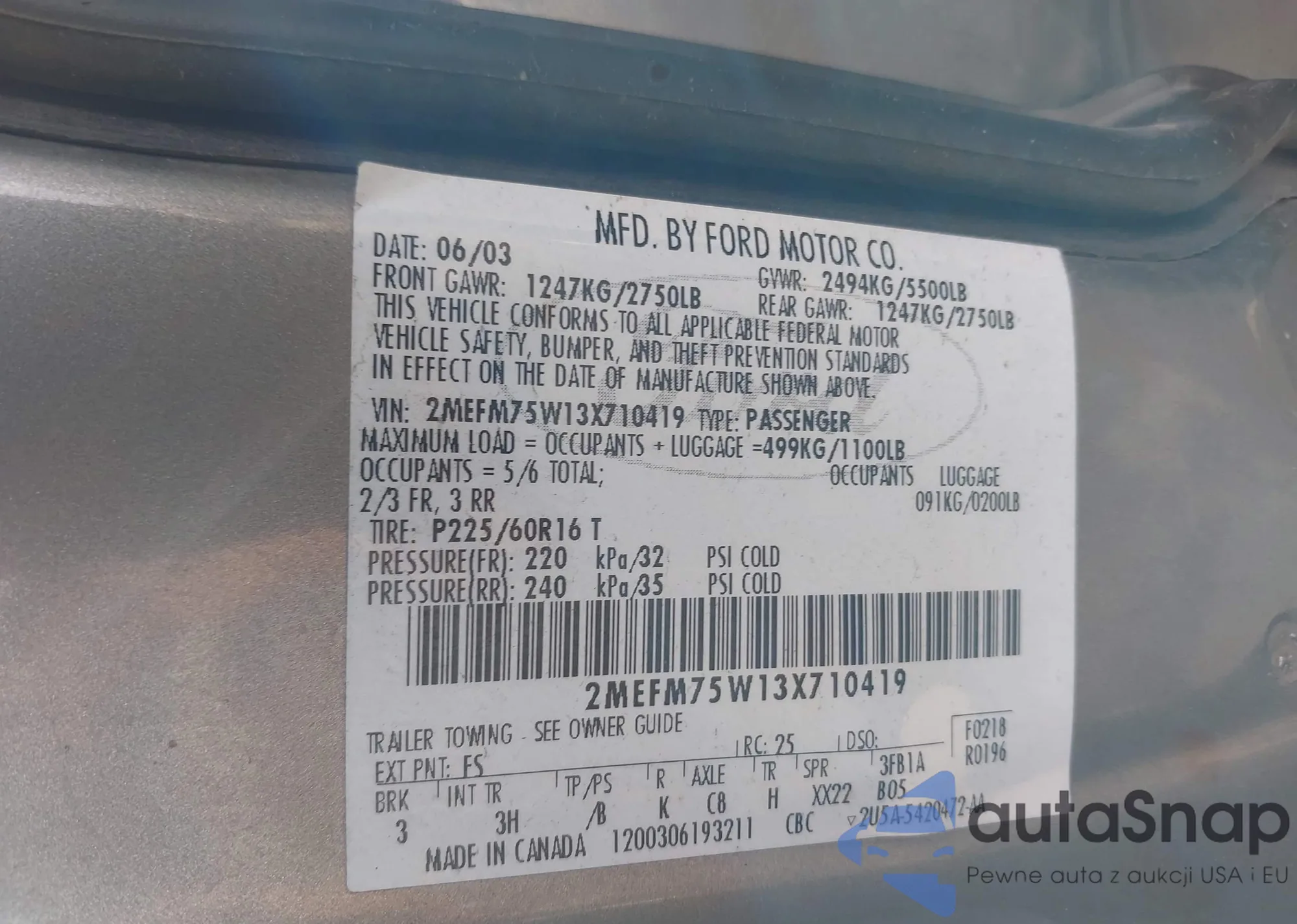 • VIN 2MEFM75W13X710419