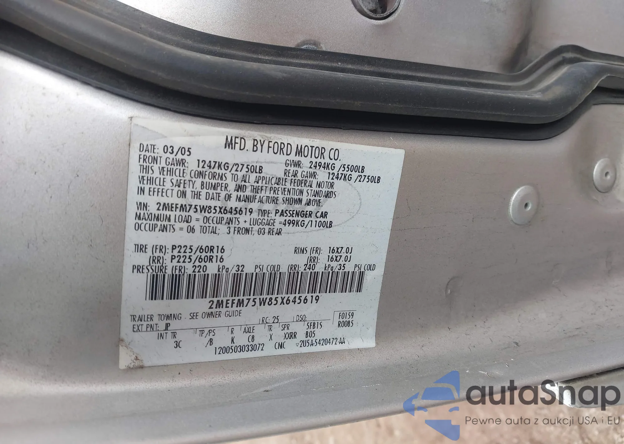 LOT: 44369355 VIN: 2MEFM75W85X645619