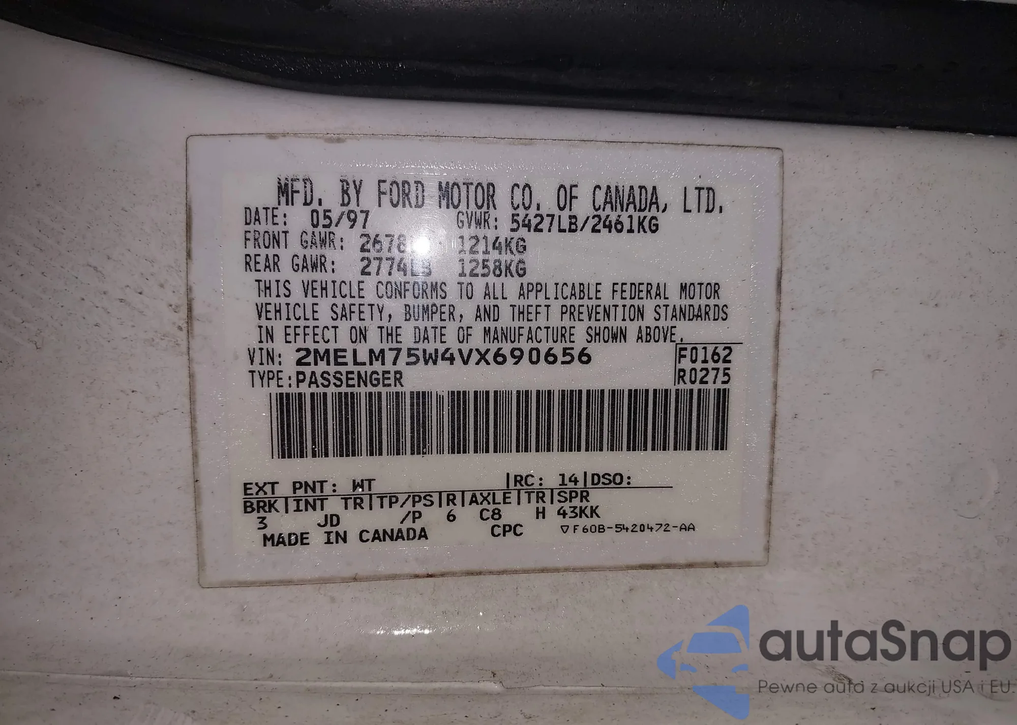 • VIN 2MELM75W4VX690656