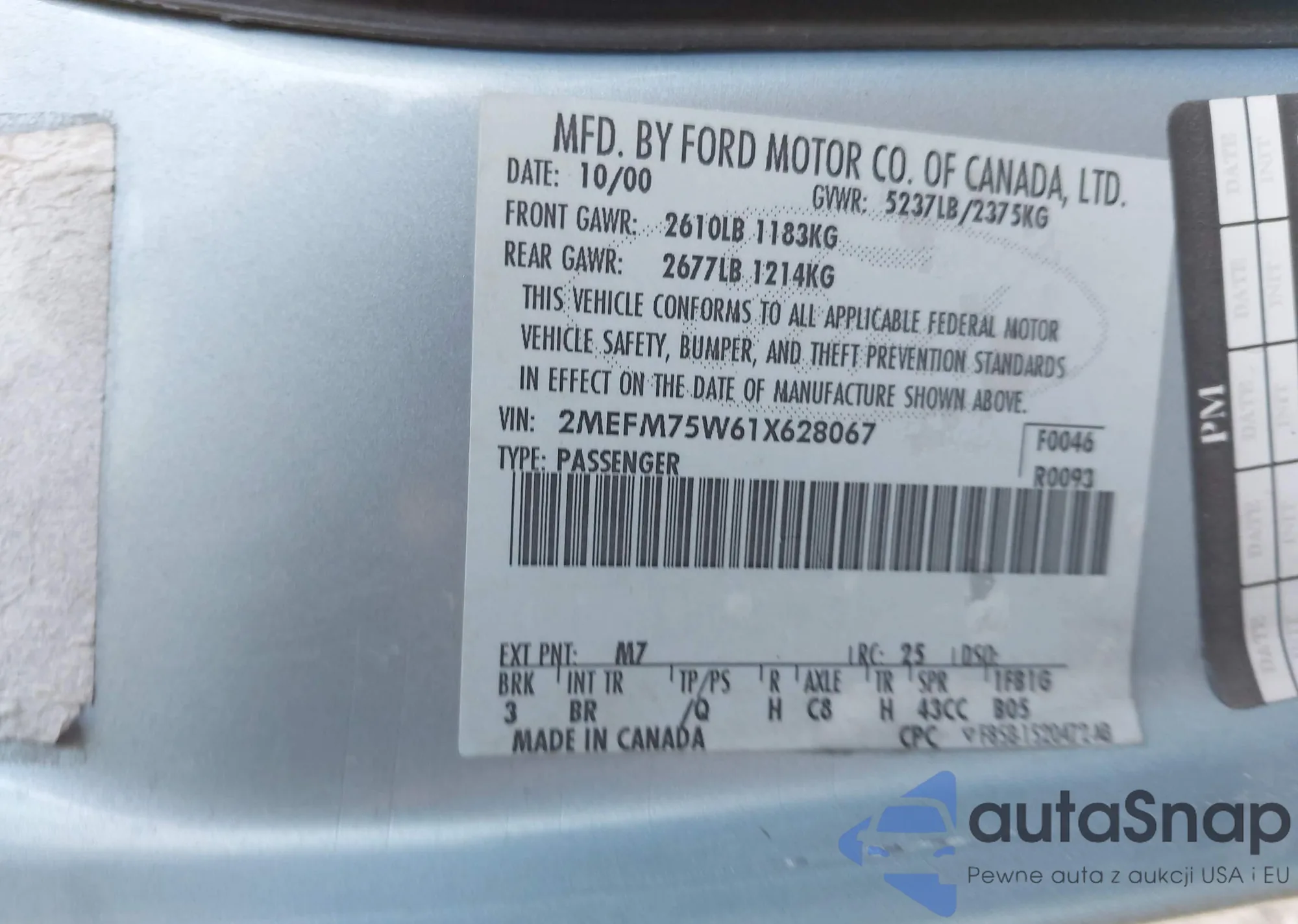 • VIN 2MEFM75W61X628067