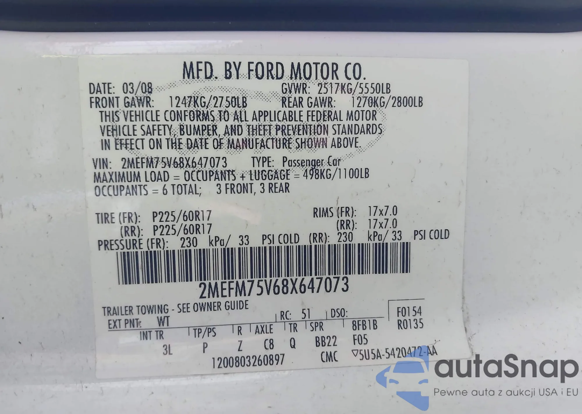 • VIN 2MEFM75V68X647073
