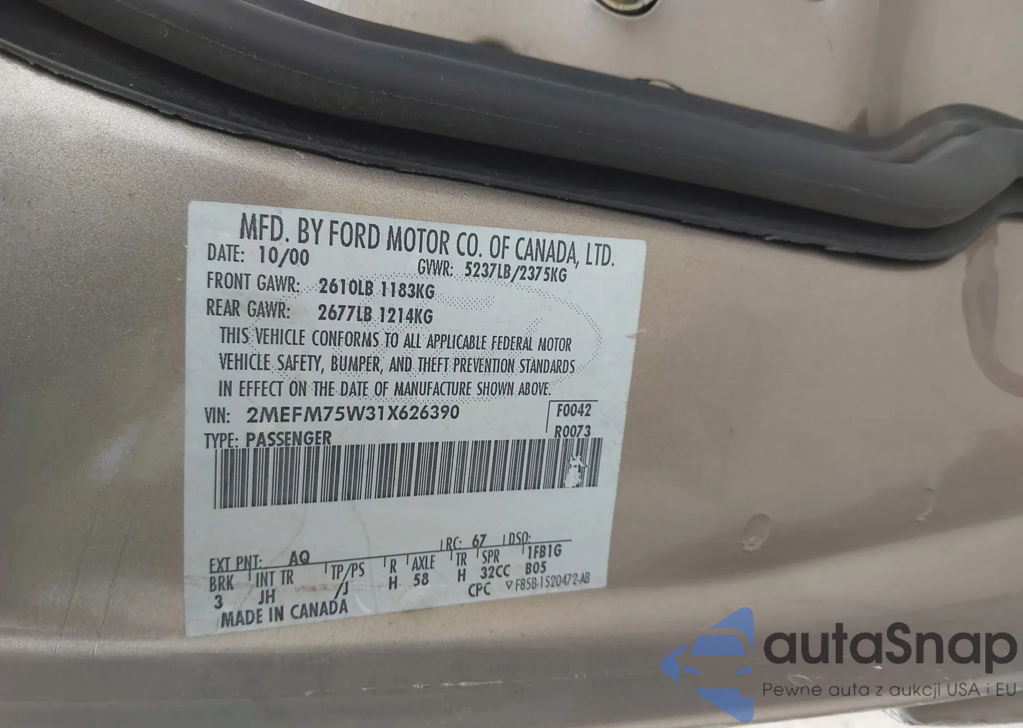 • VIN 2MEFM75W31X626390
