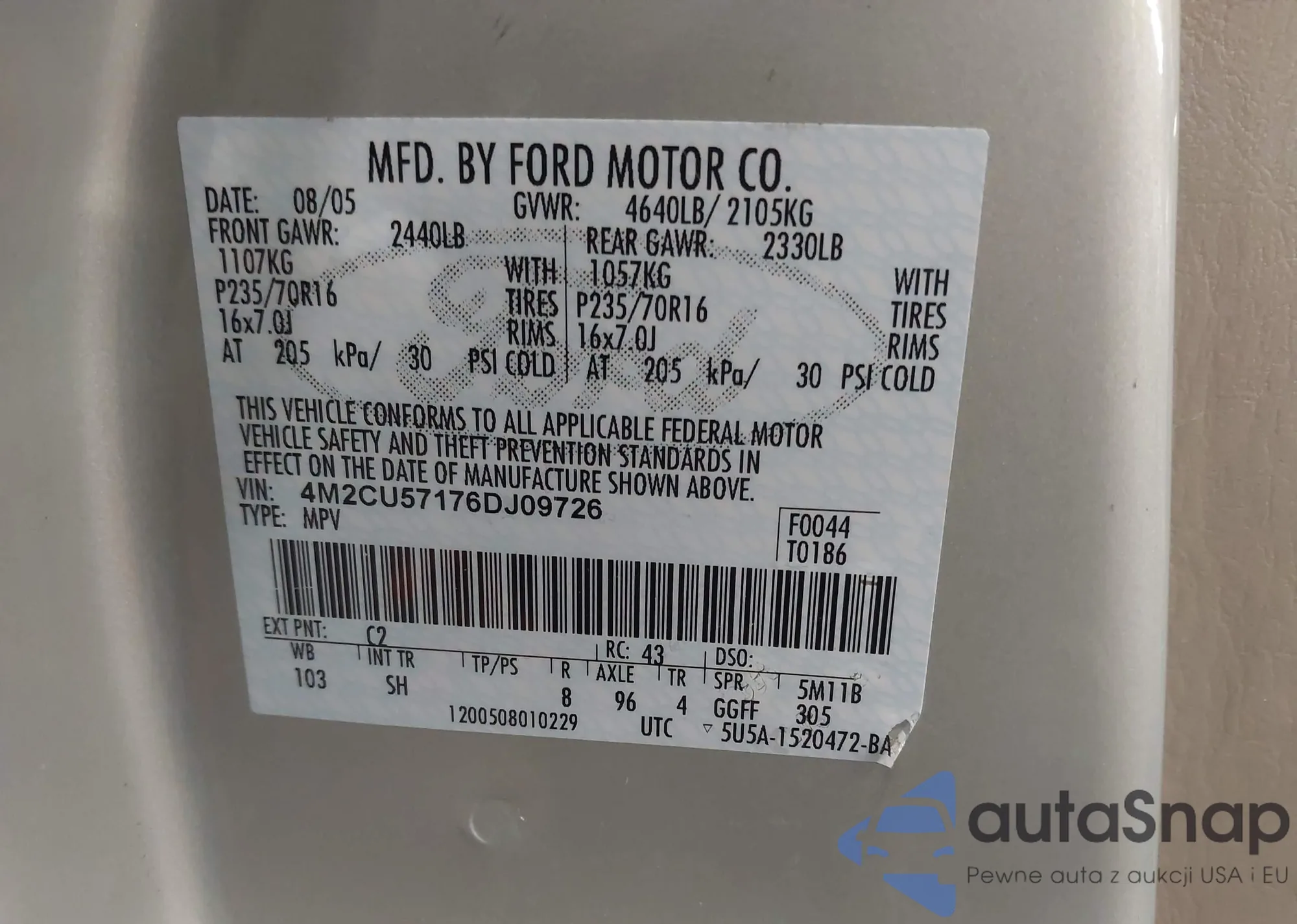 • VIN 4M2CU57176DJ09726