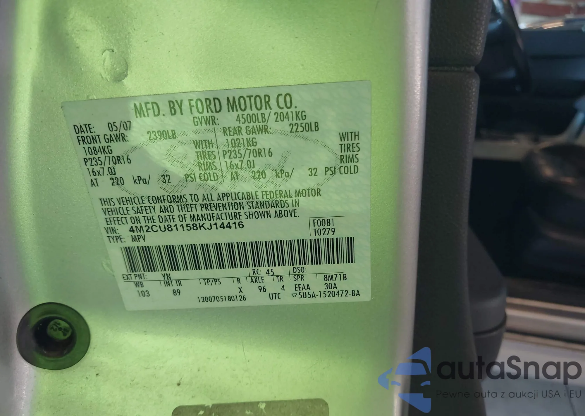 • VIN 4M2CU81158KJ14416