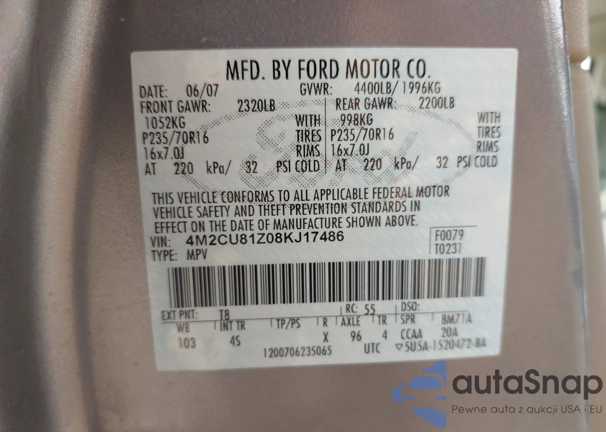 • VIN 4M2CU81Z08KJ17486