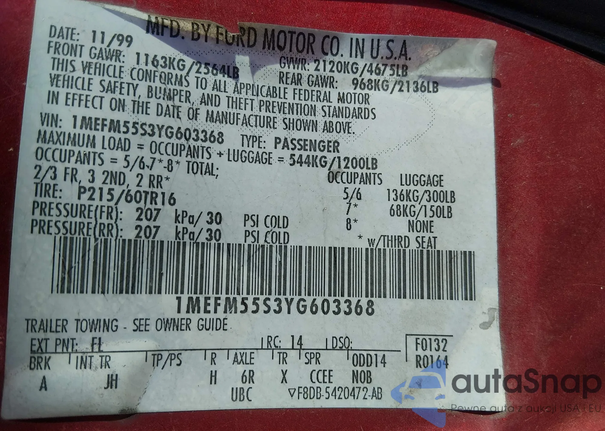 LOT: 44362028 VIN: 1MEFM55S3YG603368
