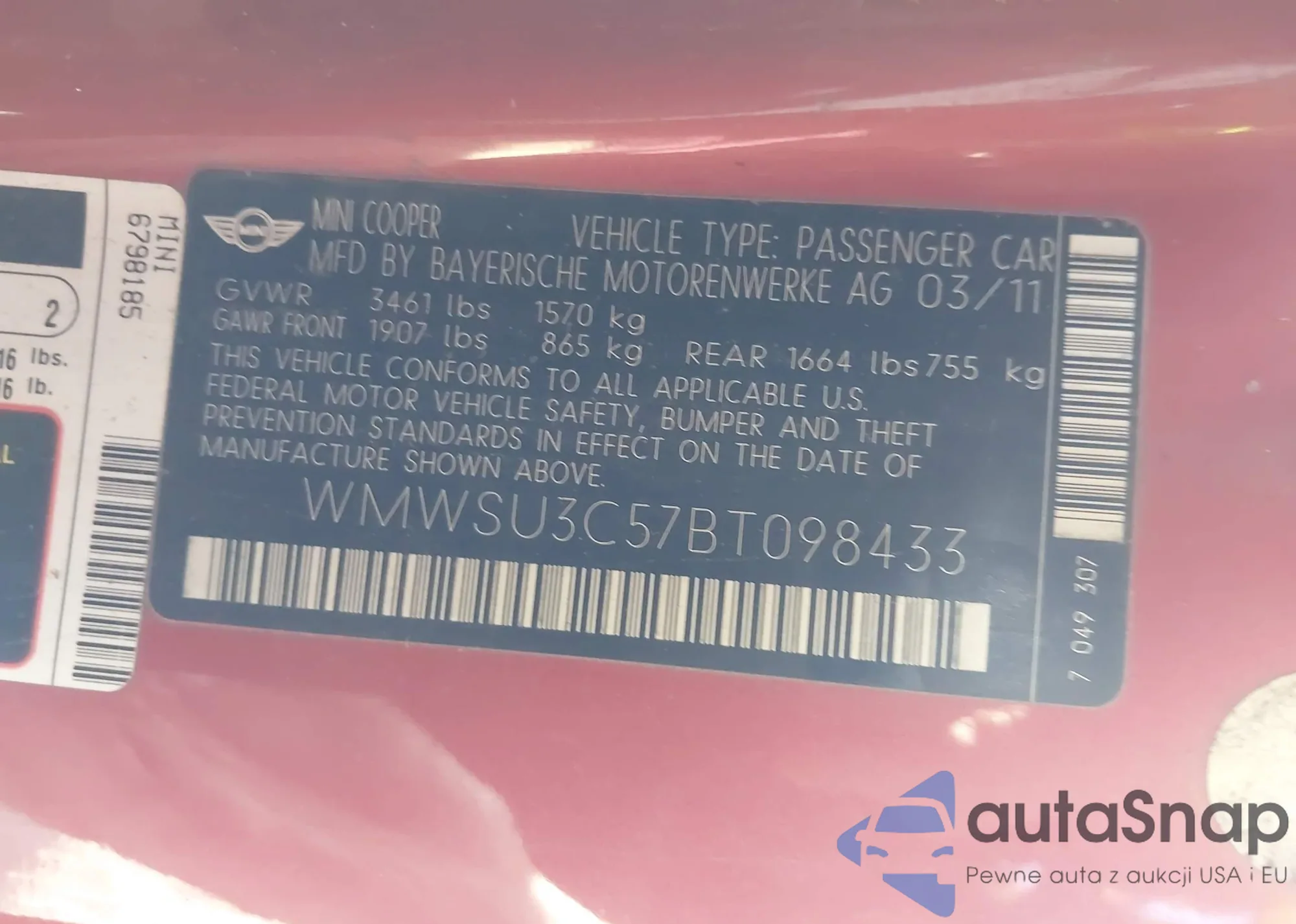 • VIN WMWSU3C57BT098433