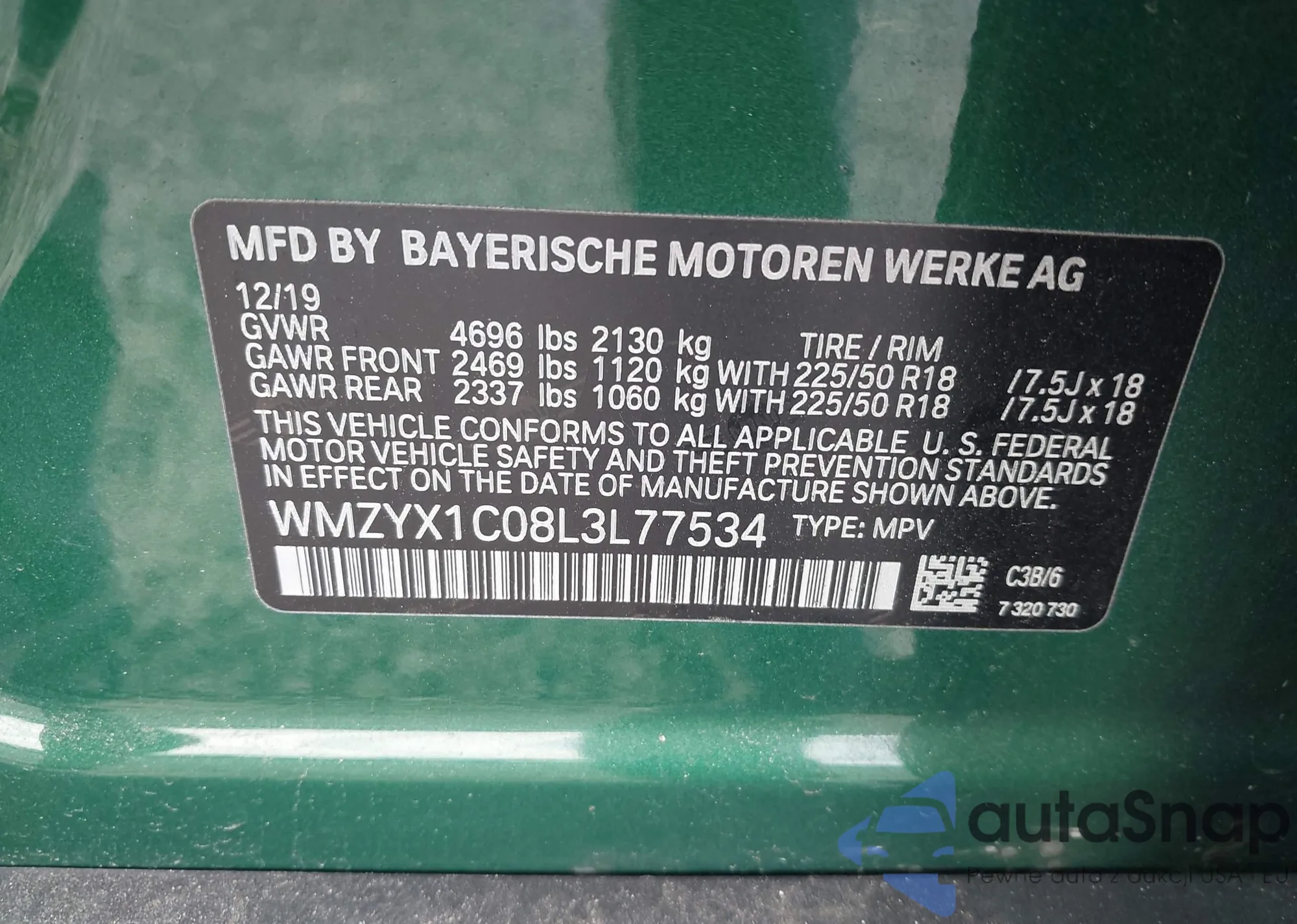LOT: 44365054 VIN: WMZYX1C08L3L77534