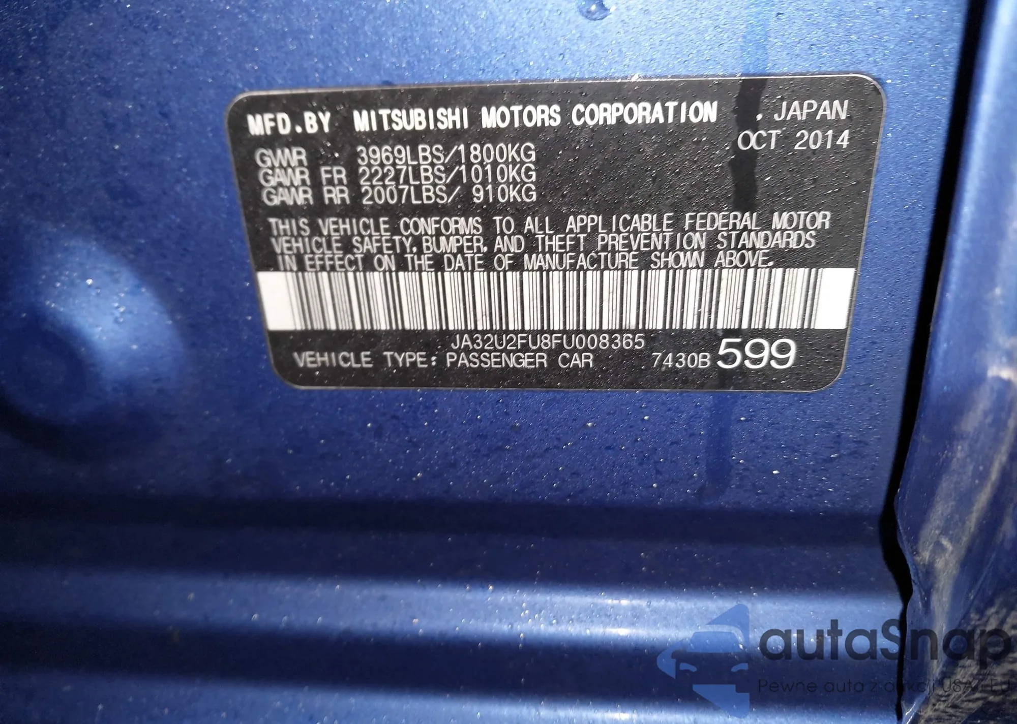 LOT: 44365346 VIN: JA32U2FU8FU008365