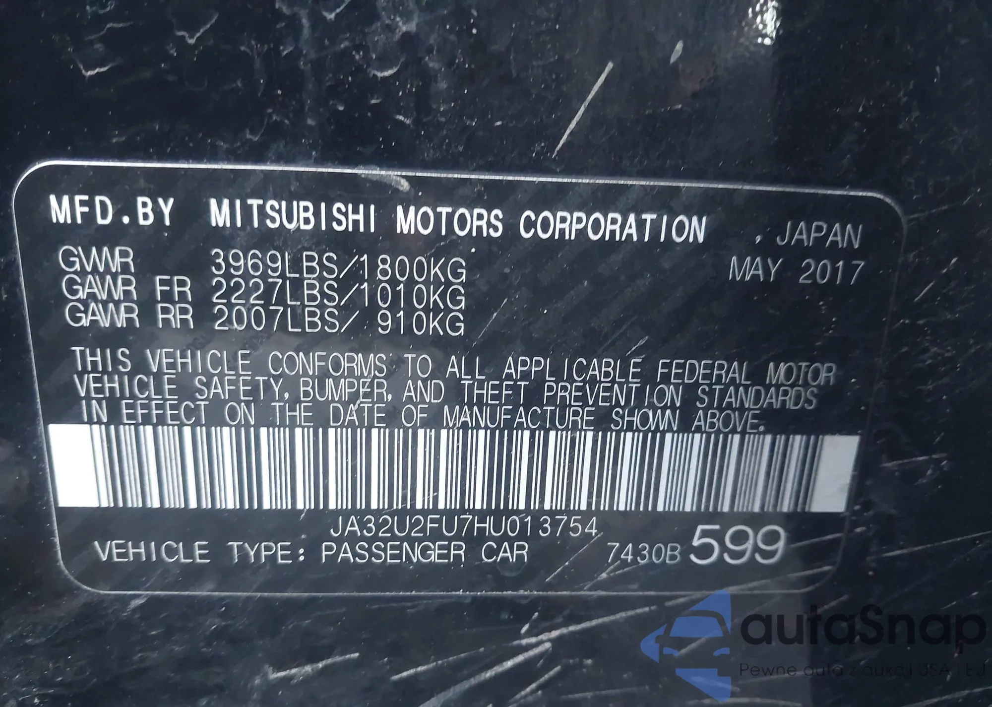 • VIN JA32U2FU7HU013754