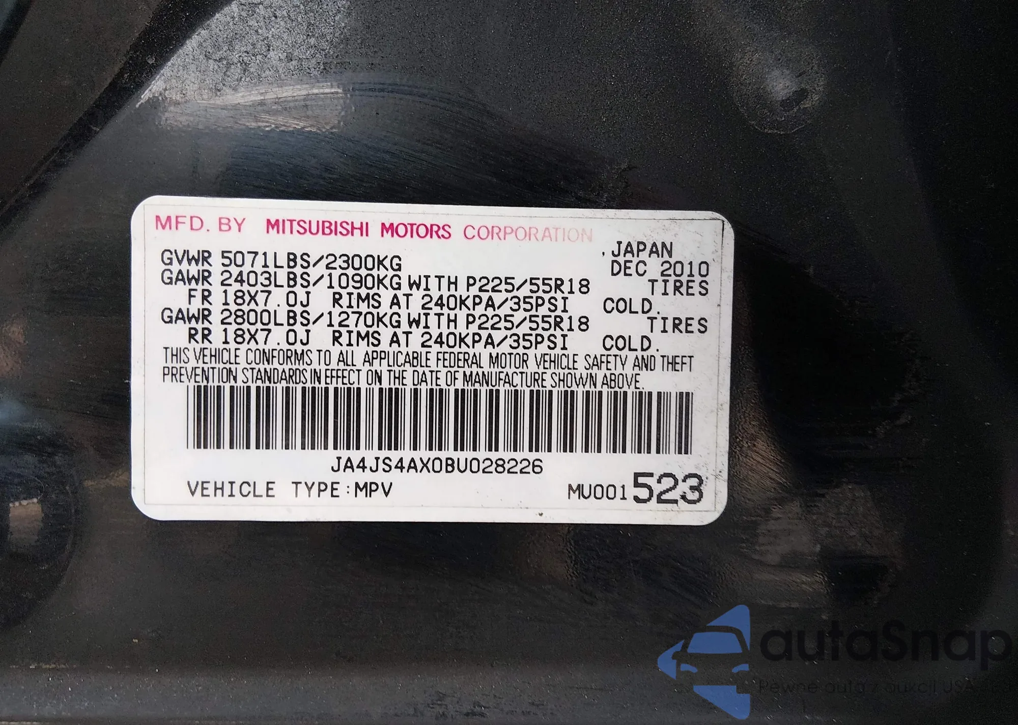 • VIN JA4JS4AX0BU028226