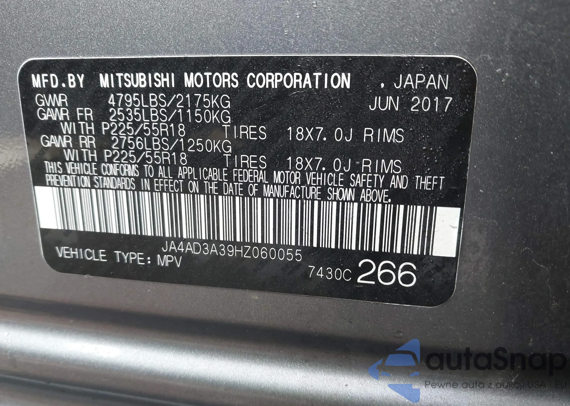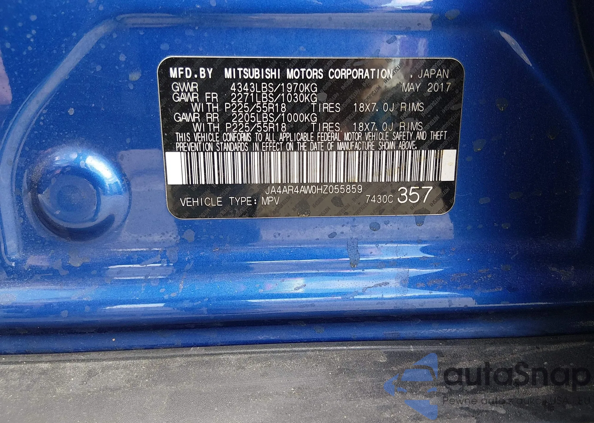 LOT: 44395246 VIN: JA4AR3AW0HZ045553