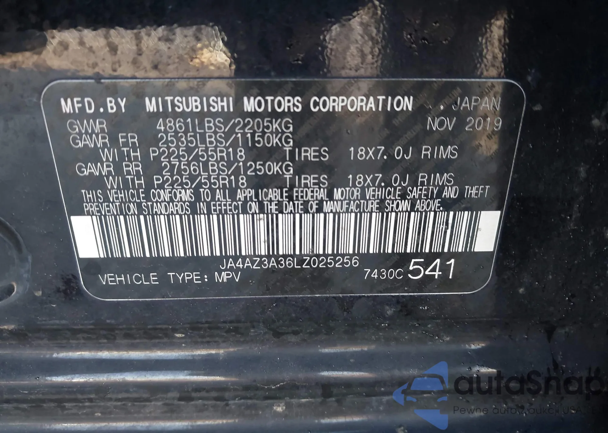 • VIN JA4AZ3A38LZ019474