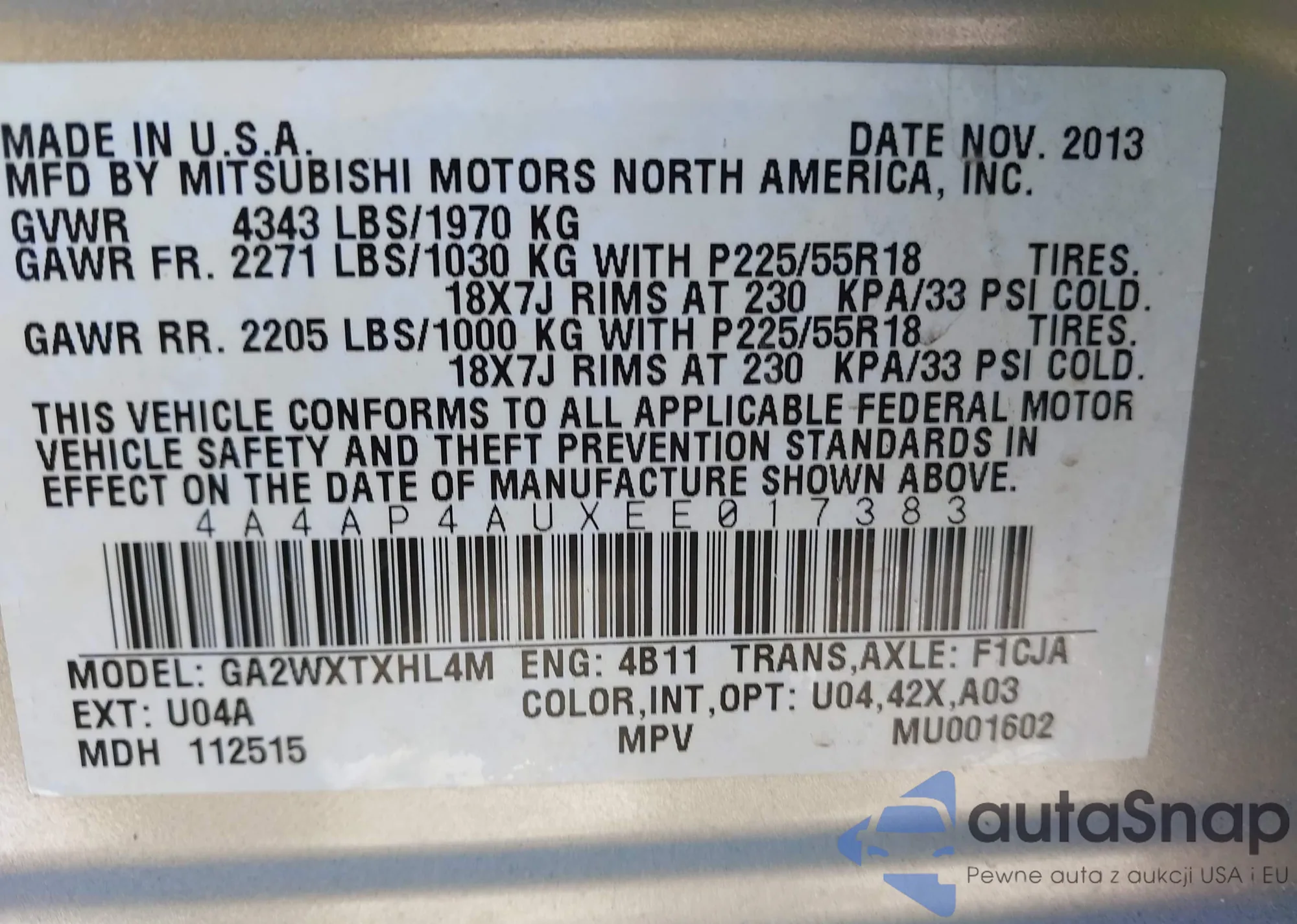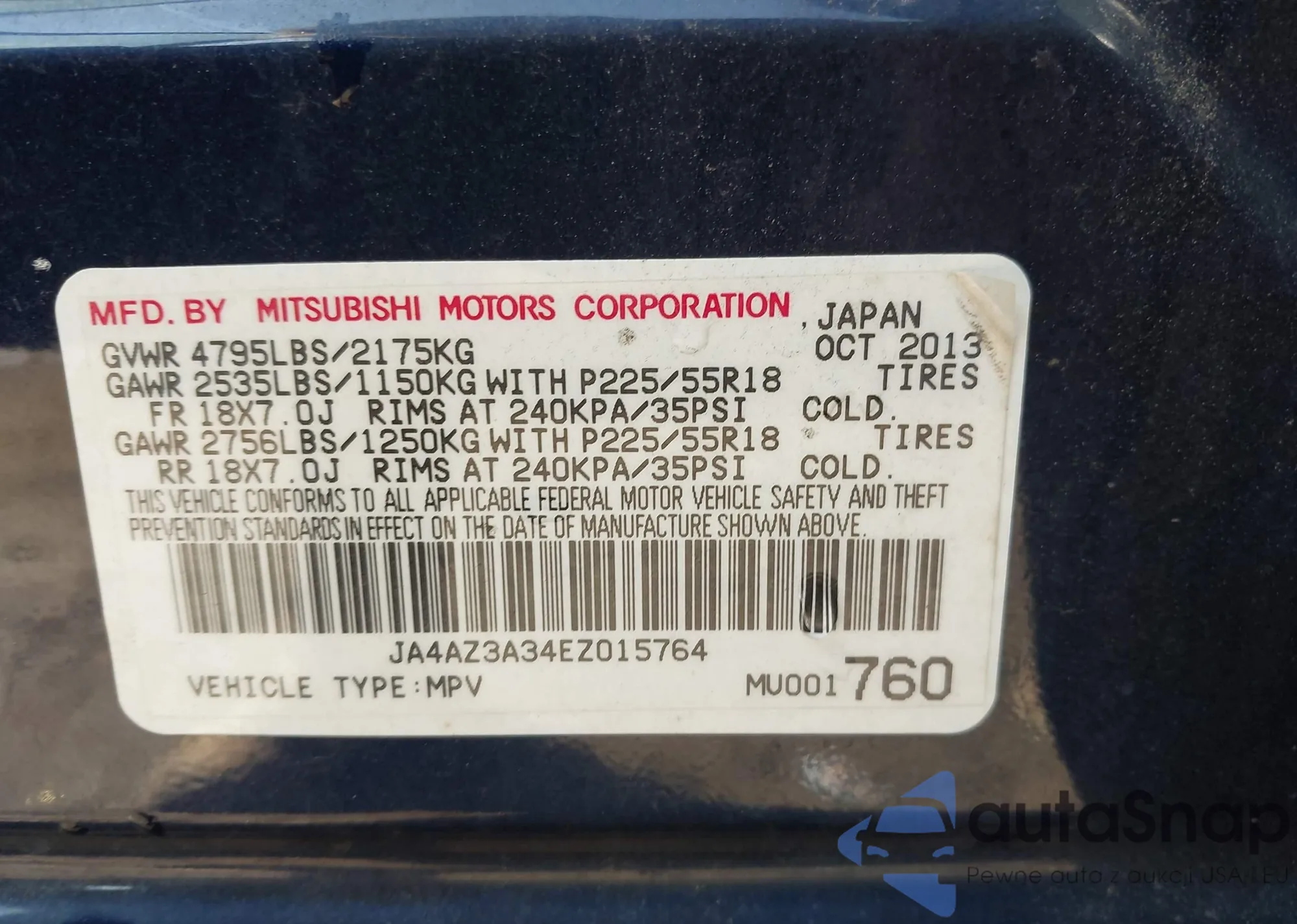 • VIN JA4AZ3A34EZ015764