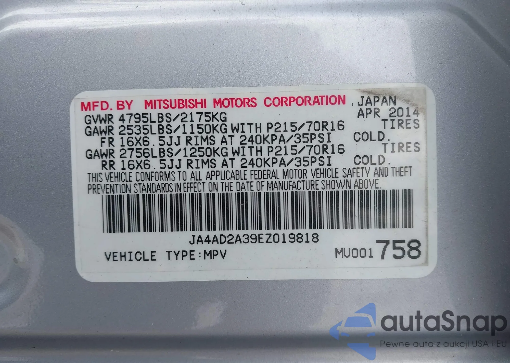 • VIN JA4AD2A39EZ019818