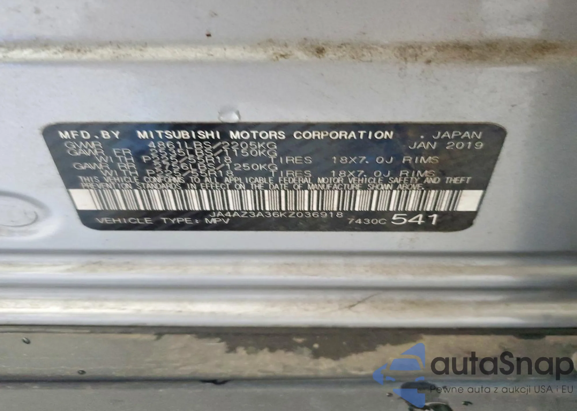 • VIN JA4J24A55KZ041538