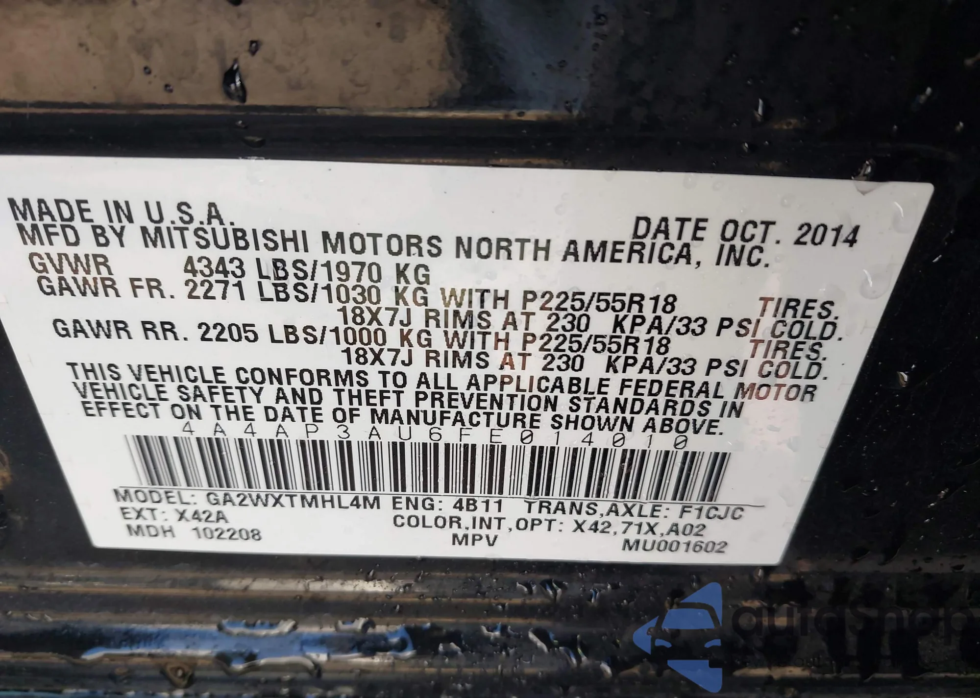 • VIN 4A4AP3AU6FE014010