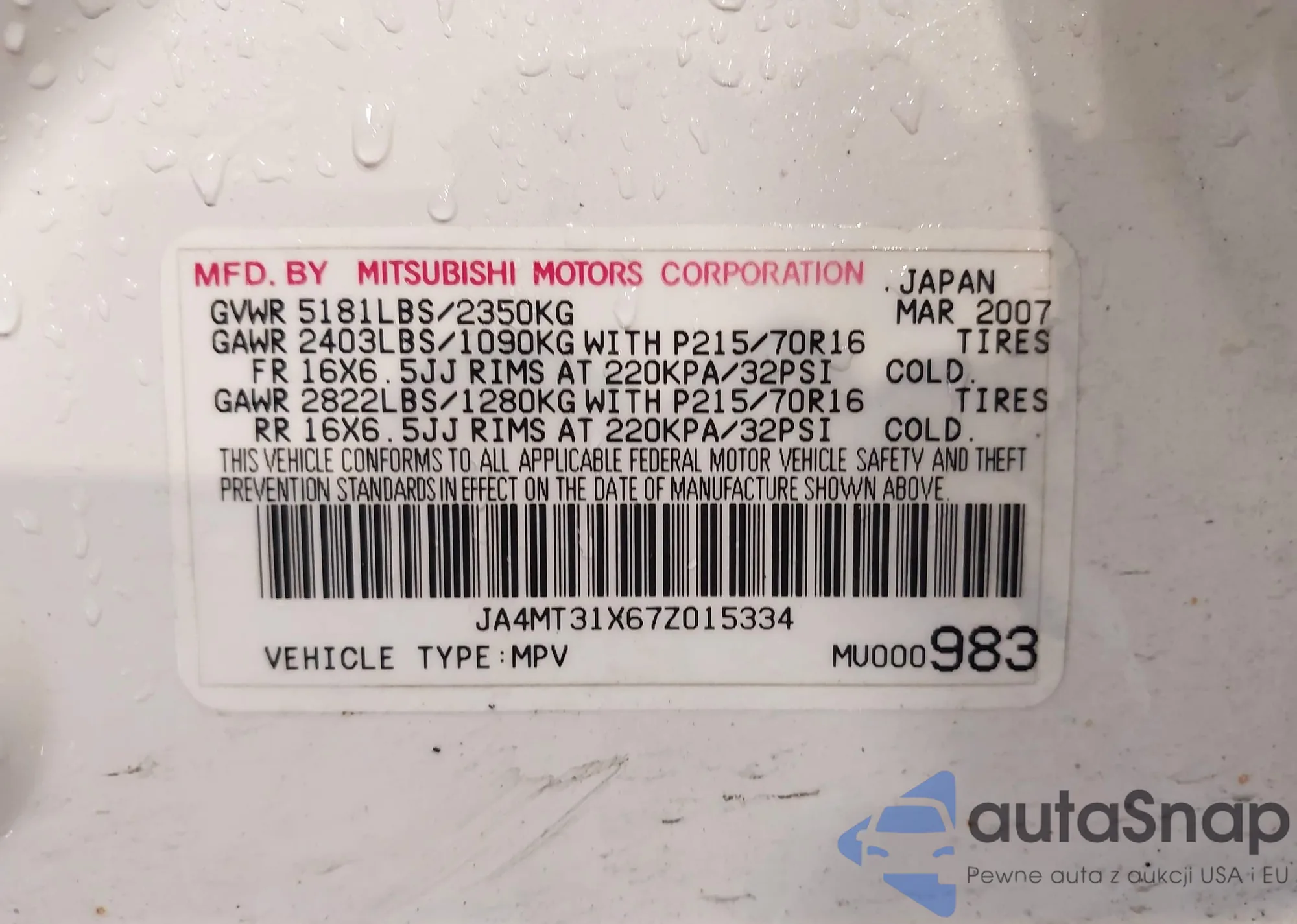 • VIN JA4MT31X67Z015334