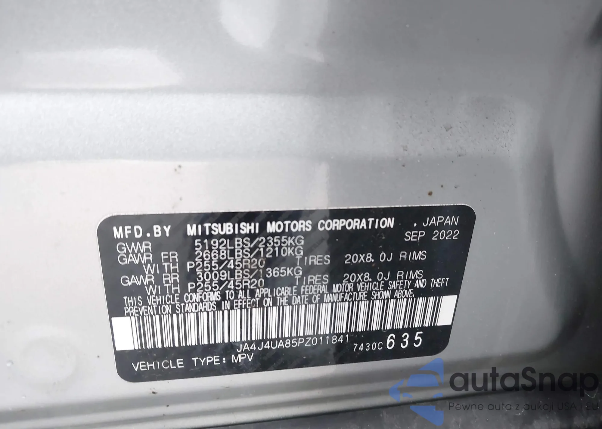 • VIN JA4J3UA85PZ058418