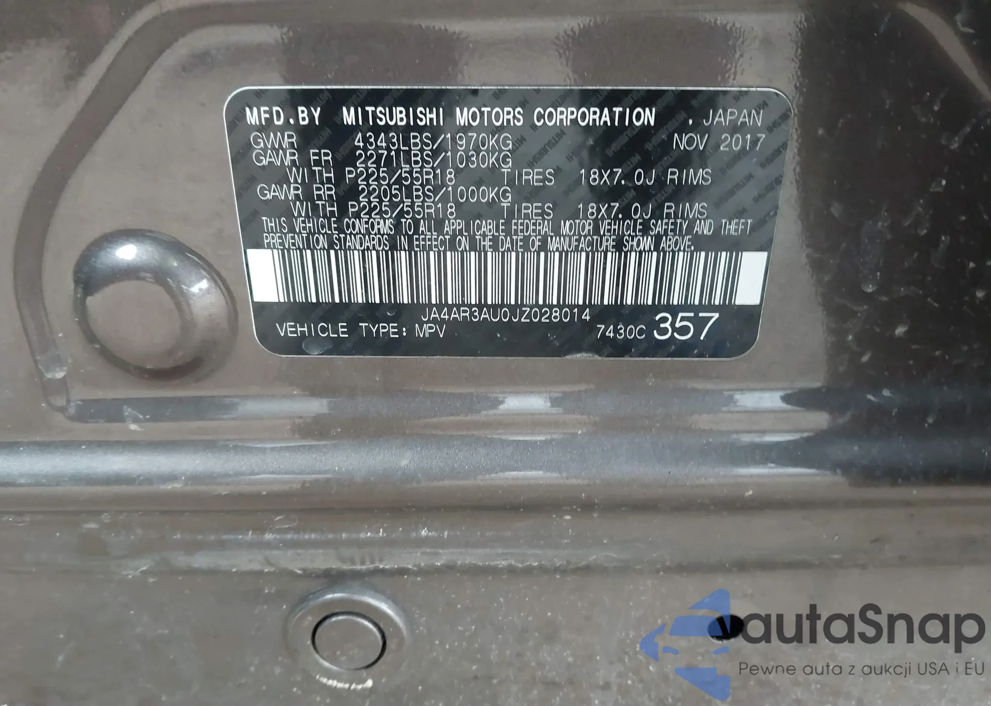 LOT: 44347158 VIN: JA4AR3AU0JZ028014