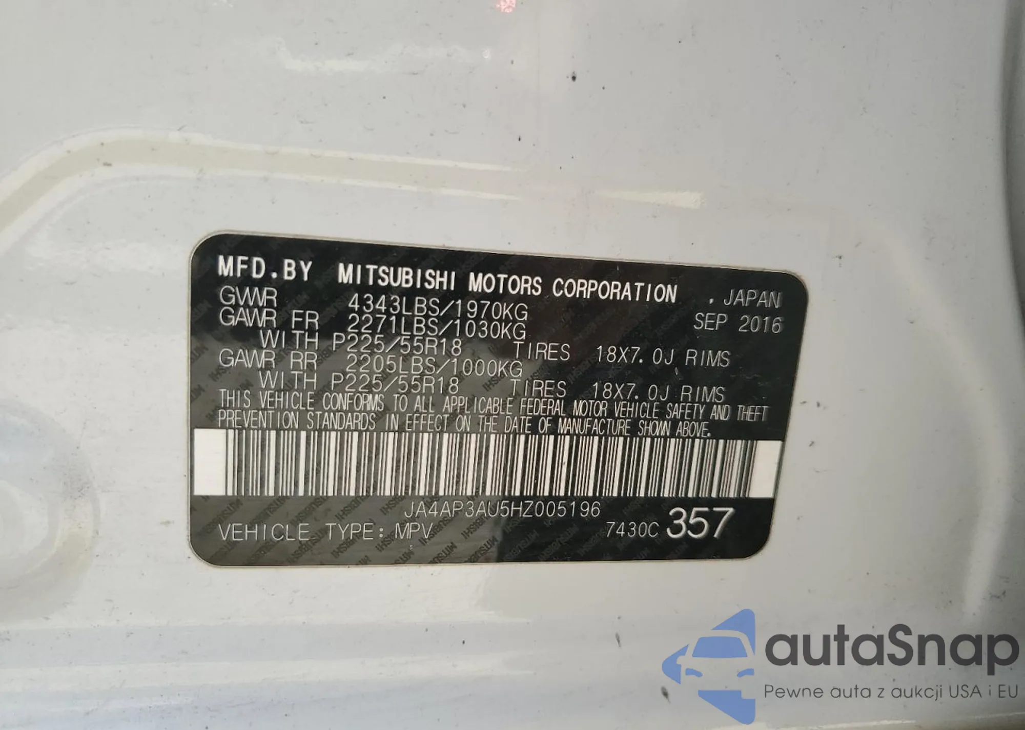 LOT: 62052295 VIN: JA4AP3AU5HZ005196