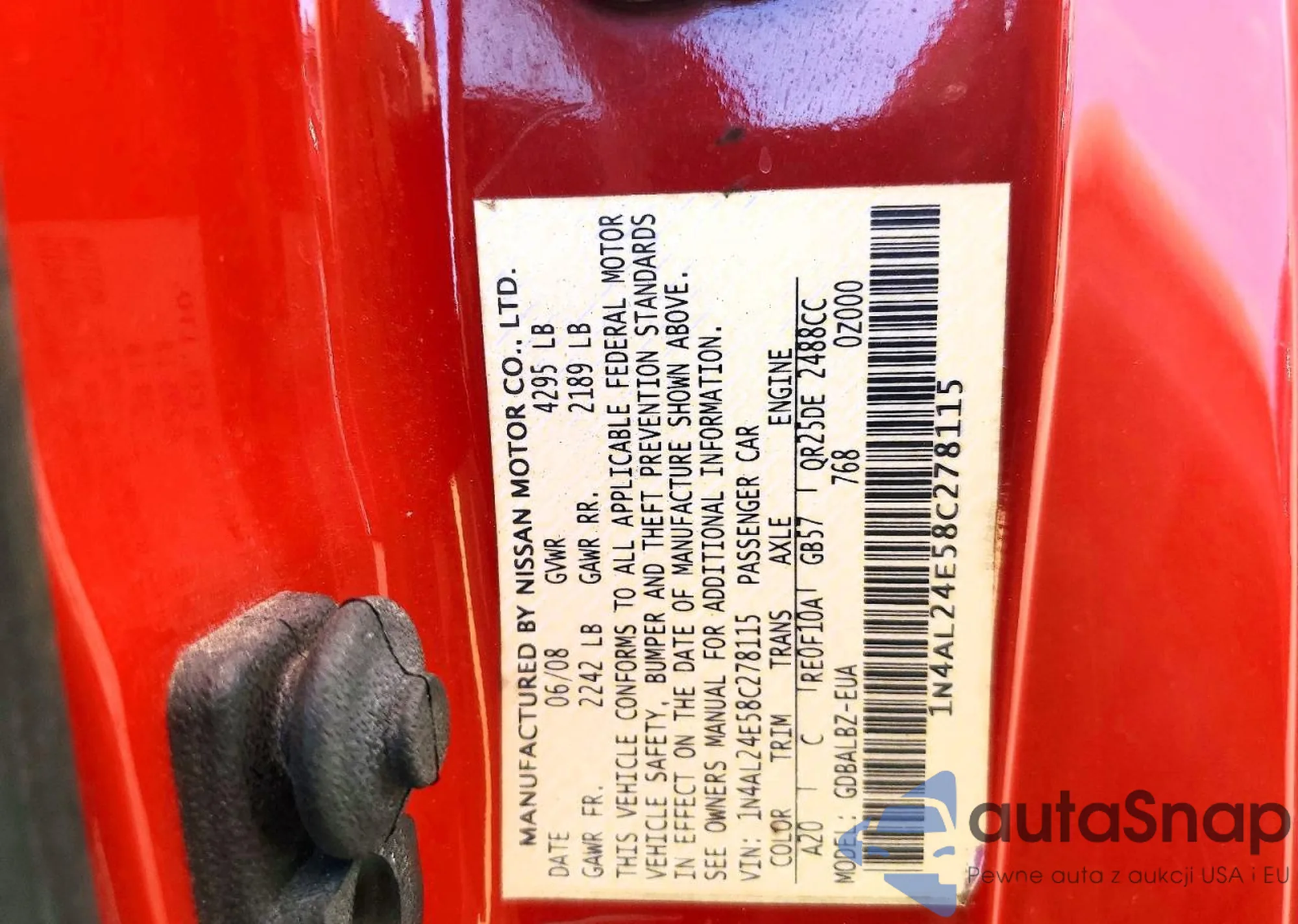 • VIN 1N4AL24E58C278115