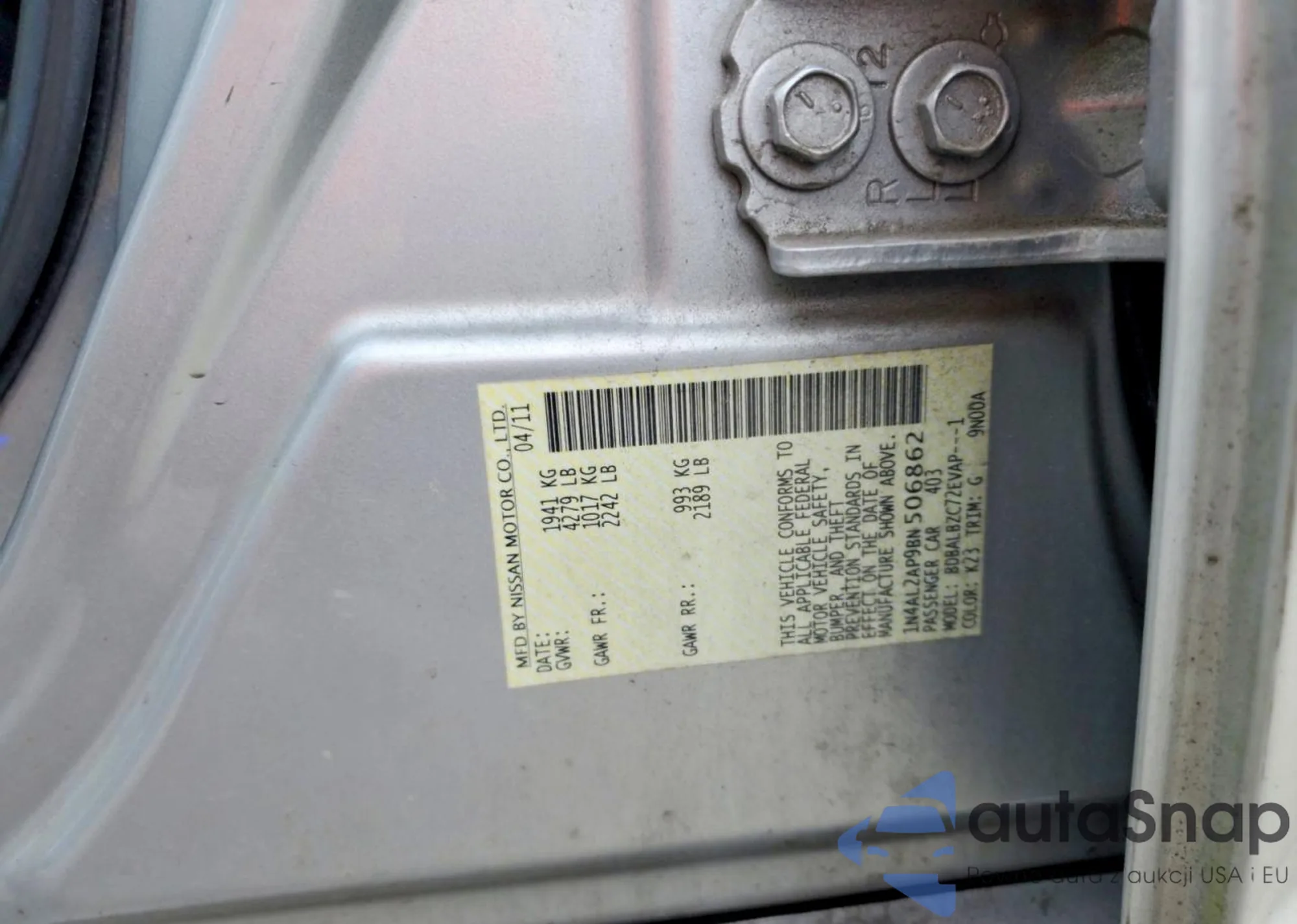 LOT: 73062995 VIN: 1N4AL2AP9BN506862