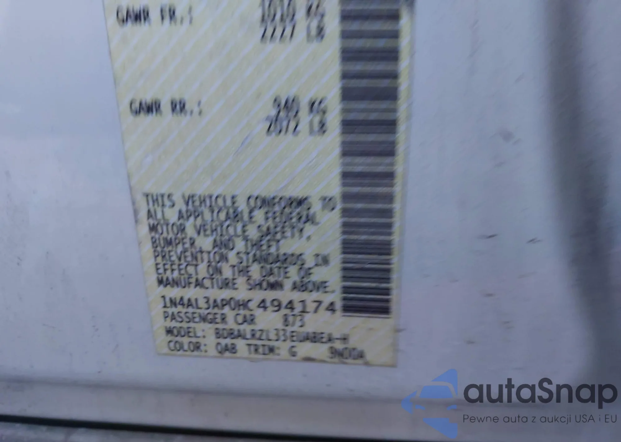• VIN 1N4AL3AP0HC494174